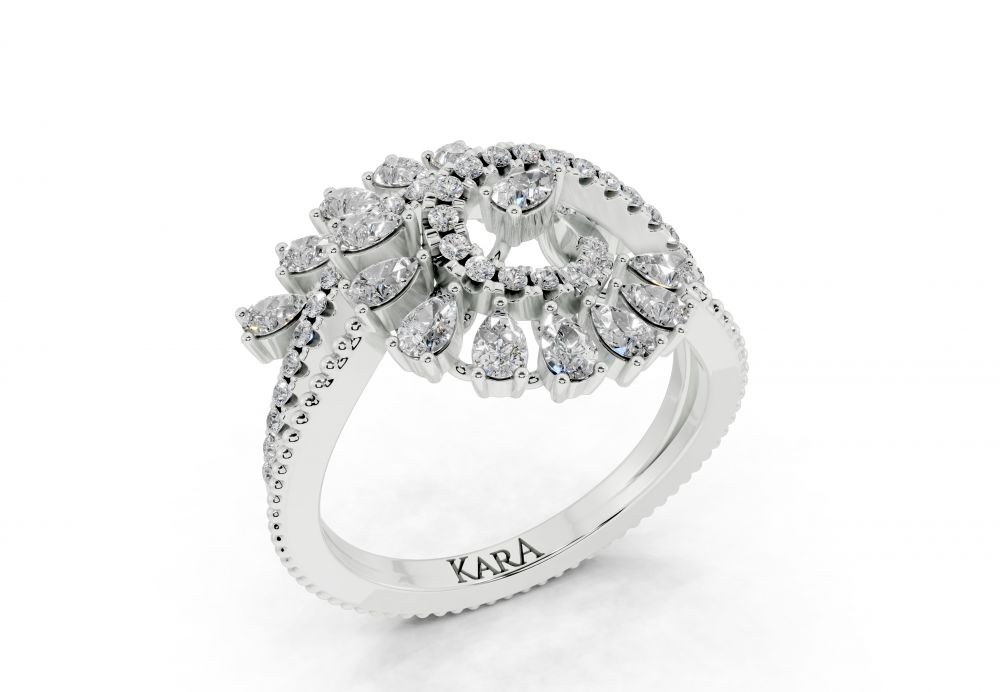 Inel din aur alb de 14K, cu diamante Pear Cut de 0.88ct si diamante rotunde de 0.27ct. Greutatea inelului este de aproximativ 4 grame.