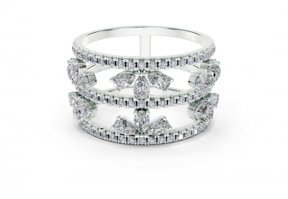 Inel din aur alb de 14K, cu diamante Pear Cut de 0.89ct si diamante rotunde de 0.36ct. Greutatea inelului este de aproximativ 4 grame. Inelul se poate face pe comanda si din aur de 18K. Putem modifica design-ul in functie de bugetul dumneavoastra.