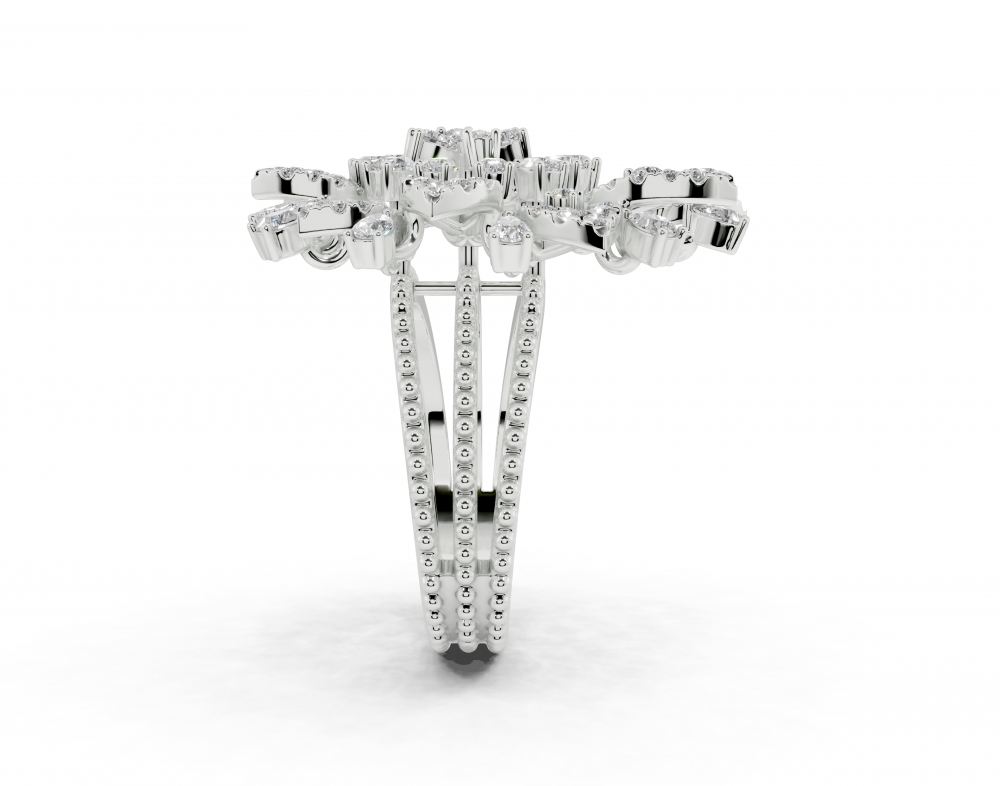 Inel din aur alb de 14K, cu diamante Pear Cut de 1.09ct si diamante rotunde de 0.65ct. Greutatea inelului este de aproximativ 6 grame.