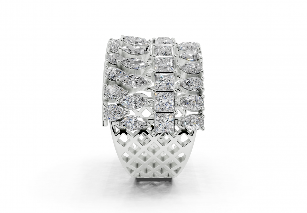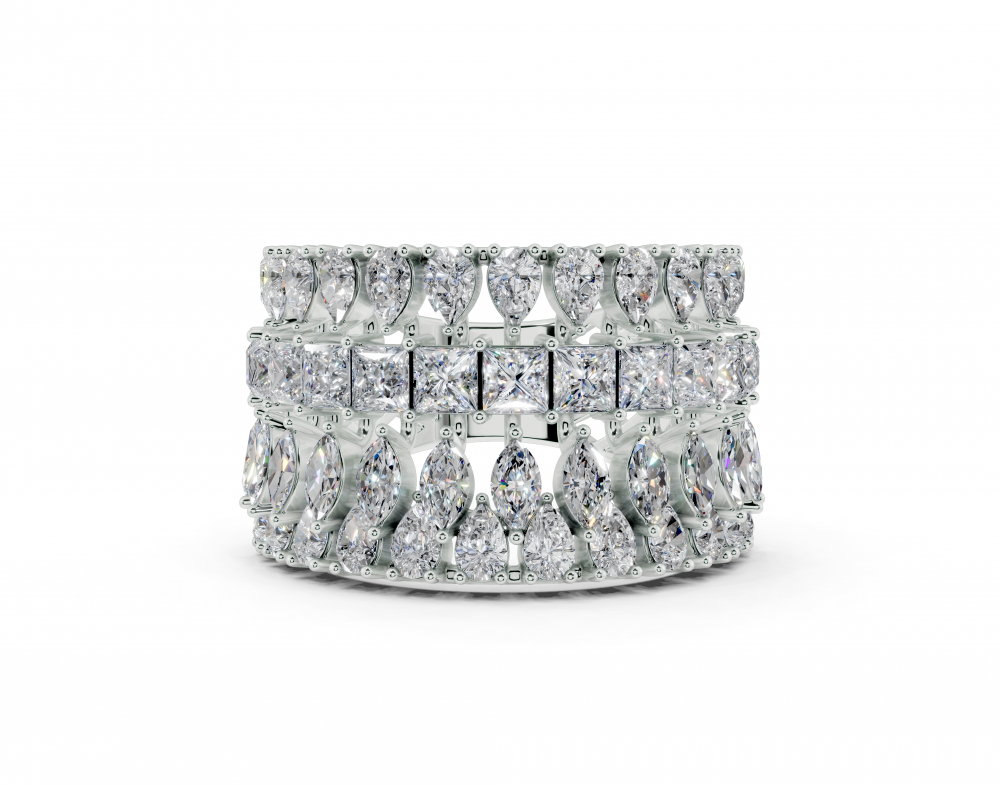 Inel din aur alb de 14K, cu diamante Pear Cut de 1.29ct, diamante Marquise Cut de 0.48ct si diamante Princess cut de 1.51ct. Greutatea inelului este de aproximativ 6.50 grame. Inelul se poate face pe comanda si din aur de 18K. Putem modifica design-ul in functie de bugetul dumneavoastra.