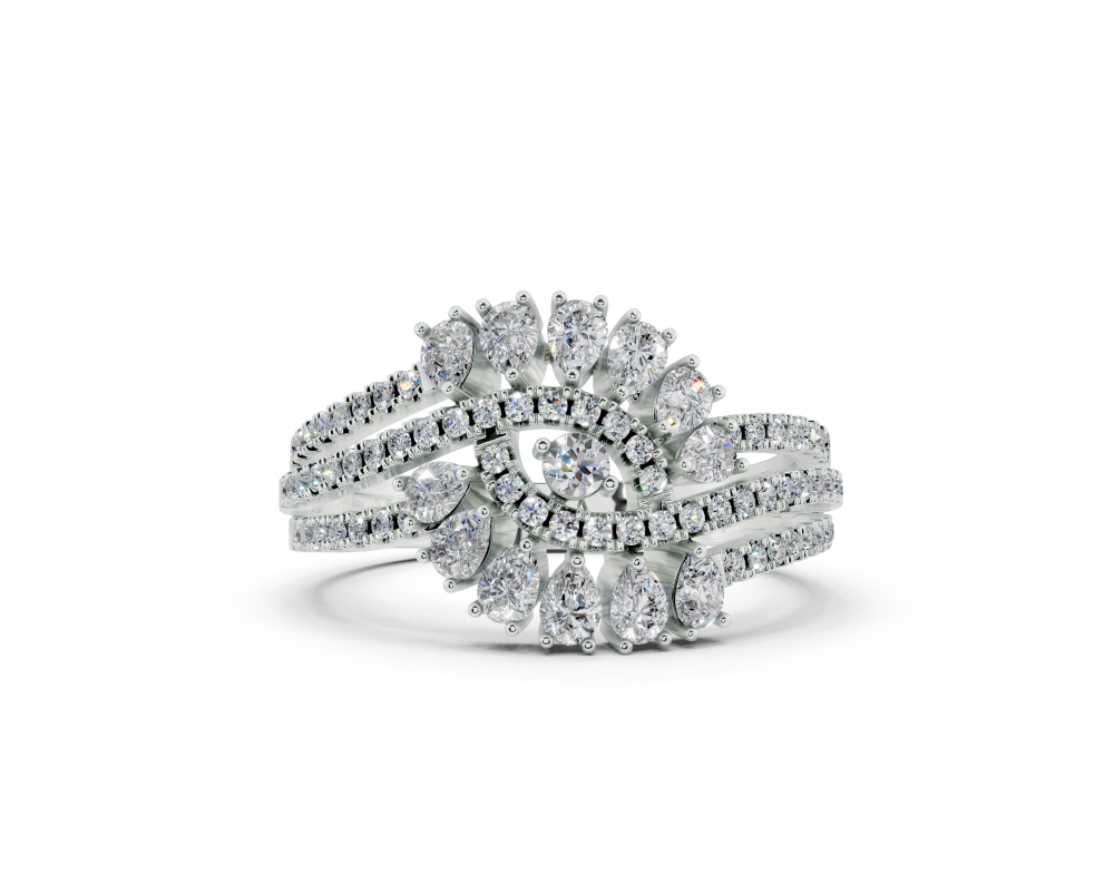 Inel din aur alb de 14K, cu diamante Pear Cut de 1.32ct si diamante rotunde de 0.43ct. Greutatea inelului este de aproximativ 7.00 grame.