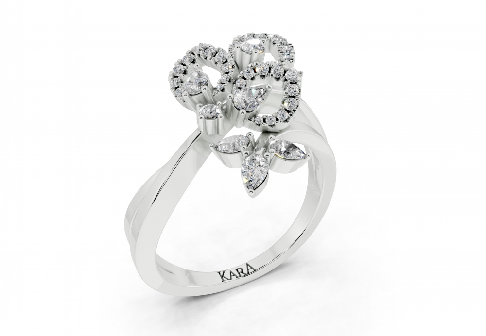 Inel din aur alb de 14K, cu diamante Pear de 0.31 ct. si diamante Rotunde de 0.13 ct. Greutatea inelului este de aproximativ 4.50 grame. Accesati "Specificatii" pentru mai multe detalii despre acest produs.
