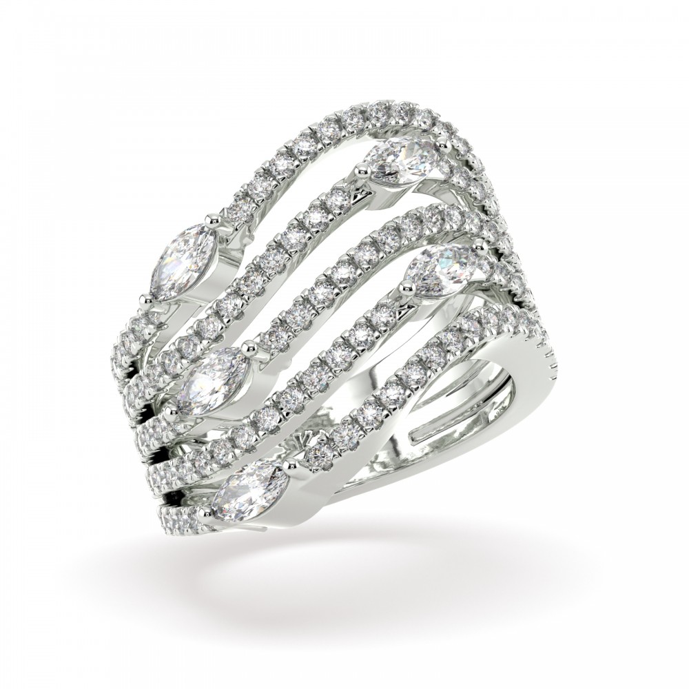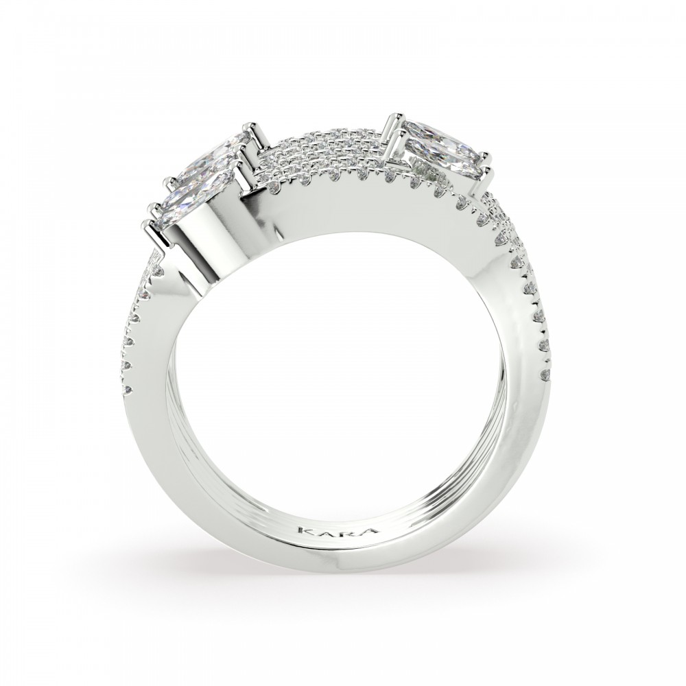 Inel din aur alb de 18 K, cu diamante Pear de 0.78 ct si diamante rotunde de 0.86 ct. Greutatea inelului este de 8.49 grame.