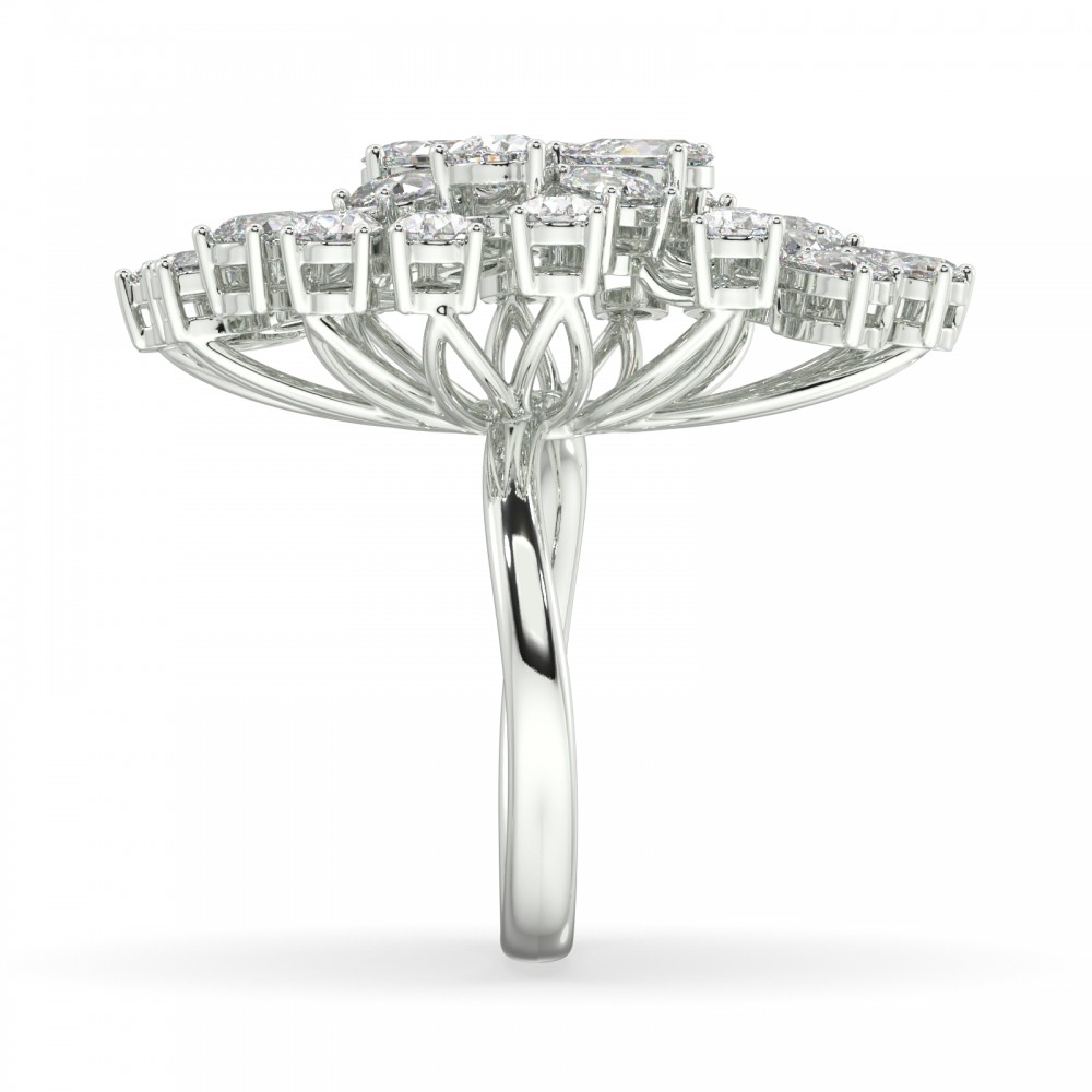 Inel din aur alb de 18 K, cu diamante de 4.31 ct. Greutatea inelului este de 10.88 grame. Inelul se poate face pe comanda si din aur de 14K. Putem modifica design-ul in functie de bugetul dumneavoastra. Putem alege caracteristicile diamantelor (taietura, culoarea,...