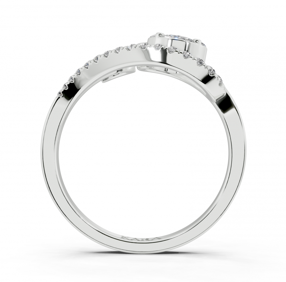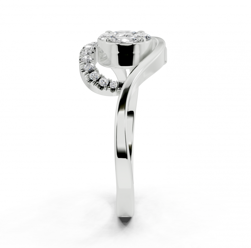 Inel din aur alb de 14K, cu diamante Princess Cut de 0.06 ct, diamante Marquise Cut de 0.13ct si diamante rotunde de 0.11 ct. Greutatea inelului este de aproximativ 3.5 grame.