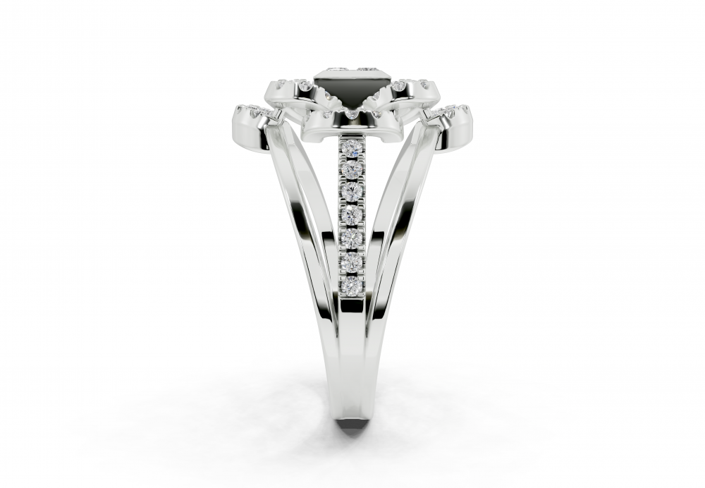 Inel din aur alb de 14K, cu diamante Princess Cut de 0.16ct si diamante rotunde de 0.33ct. Greutatea inelului este de aproximativ 4.50 grame. Inelul se poate face pe comanda si din aur de 18K. Putem modifica design-ul in functie de bugetul dumneavoastra.
