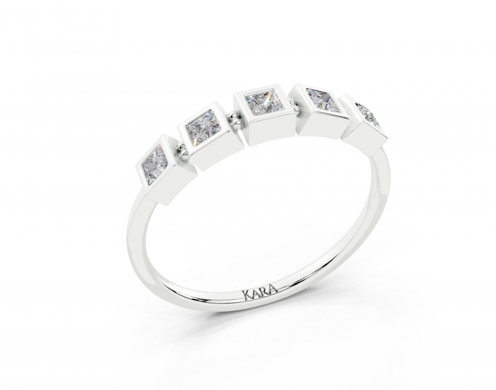 Inel din aur alb de 14K, cu diamante Princess Cut de 0.25ct. Greutatea inelului este de 1.96 grame.