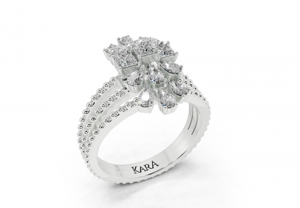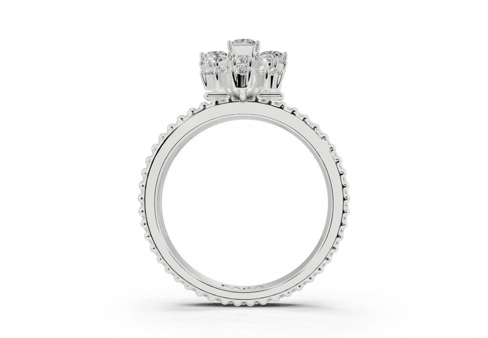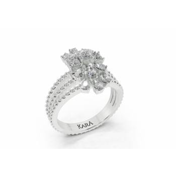 Inel din aur alb de 14K, cu diamante Princess Cut de 0.36ct si diamante rotunde de 0.62ct. Greutatea inelului este de aproximativ 5.50 grame. Inelul se poate face pe comanda si din aur de 18K. Putem modifica design-ul in functie de bugetul dumneavoastra.