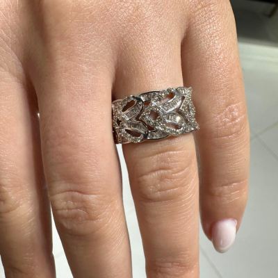 Inel din aur alb de 14K, cu diamante rotunde de 0.19 ct si diamante Baget de 0.04 ct. Greutatea inelului este de 2.36 grame. Putem modifica design-ul in functie de bugetul dumneavoastra. Putem alege caracteristicile diamantelor (taietura, culoarea, claritate, carate) pentru a crea...