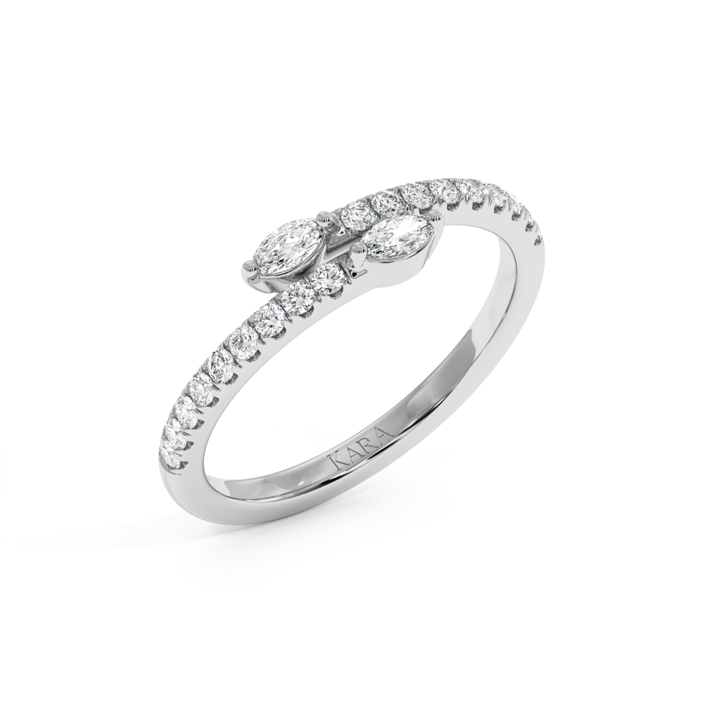 Inel din aur alb de 14K, cu diamante rotunde de 0.21ct si diamante Marquise Cut de 0.10ct. Greutatea inelului este de aproximativ 2.18 grame. Inelul se poate face pe comanda si din aur de 18K. Putem modifica designul in functie de bugetul dumneavoastra.