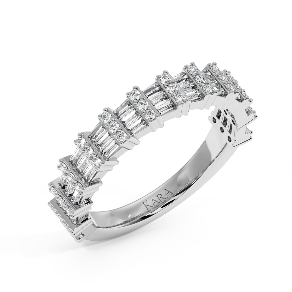 Inel din aur alb de 14K, cu Diamante rotunde de 0.23 ct si Diamante Baget de 0.43 ct. Greutatea inelului este de 3.41 grame. Inelul se poate face pe comanda si din aur de 18K. Putem modifica design-ul in functie de bugetul dumneavoastra. Putem alege caracteristicile diamantelor (taietura,...