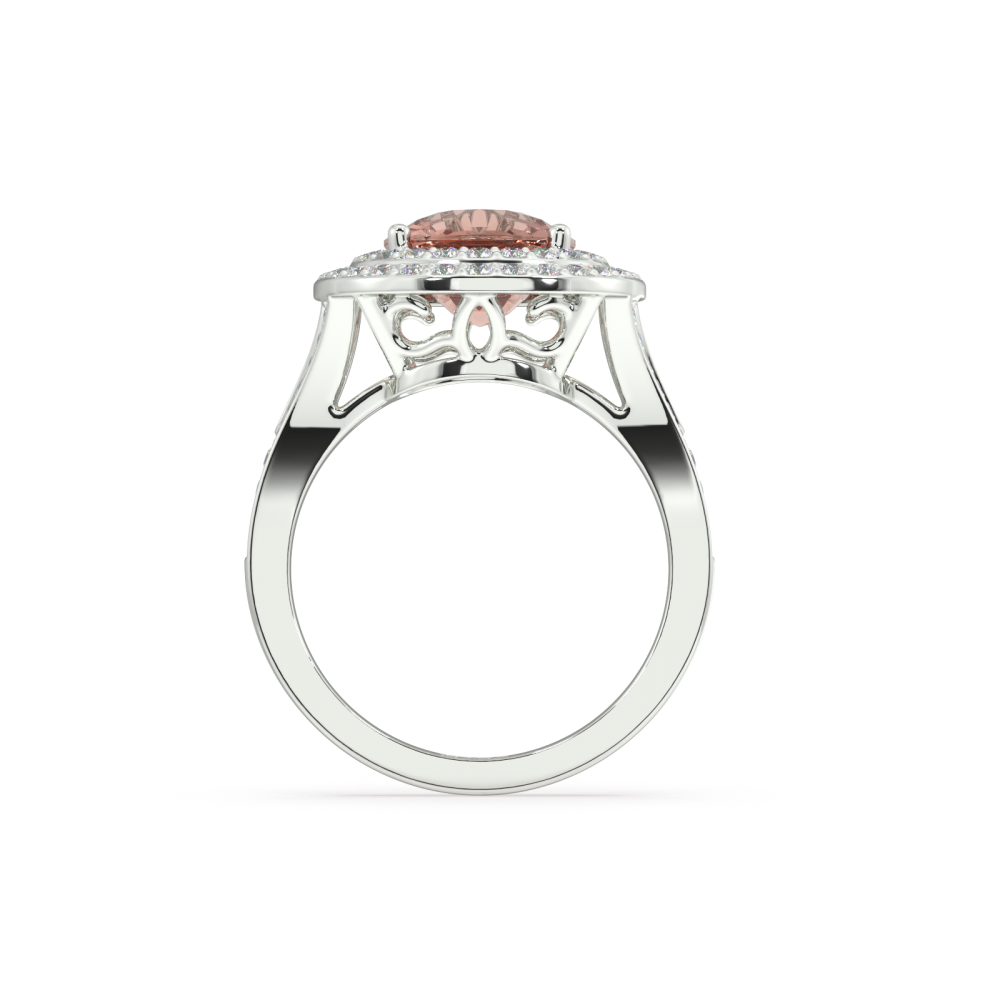 Inel din aur alb de 14K, cu Morganite Cushion Cut central de 5.43ct si diamante rotunde laterale de 0.51ct. Greutatea inelului este de aproximativ 7.60 grame. Putem modifica design-ul in functie de bugetul dumneavoastra. Putem alege caracteristicile diamantelor (taietura,...