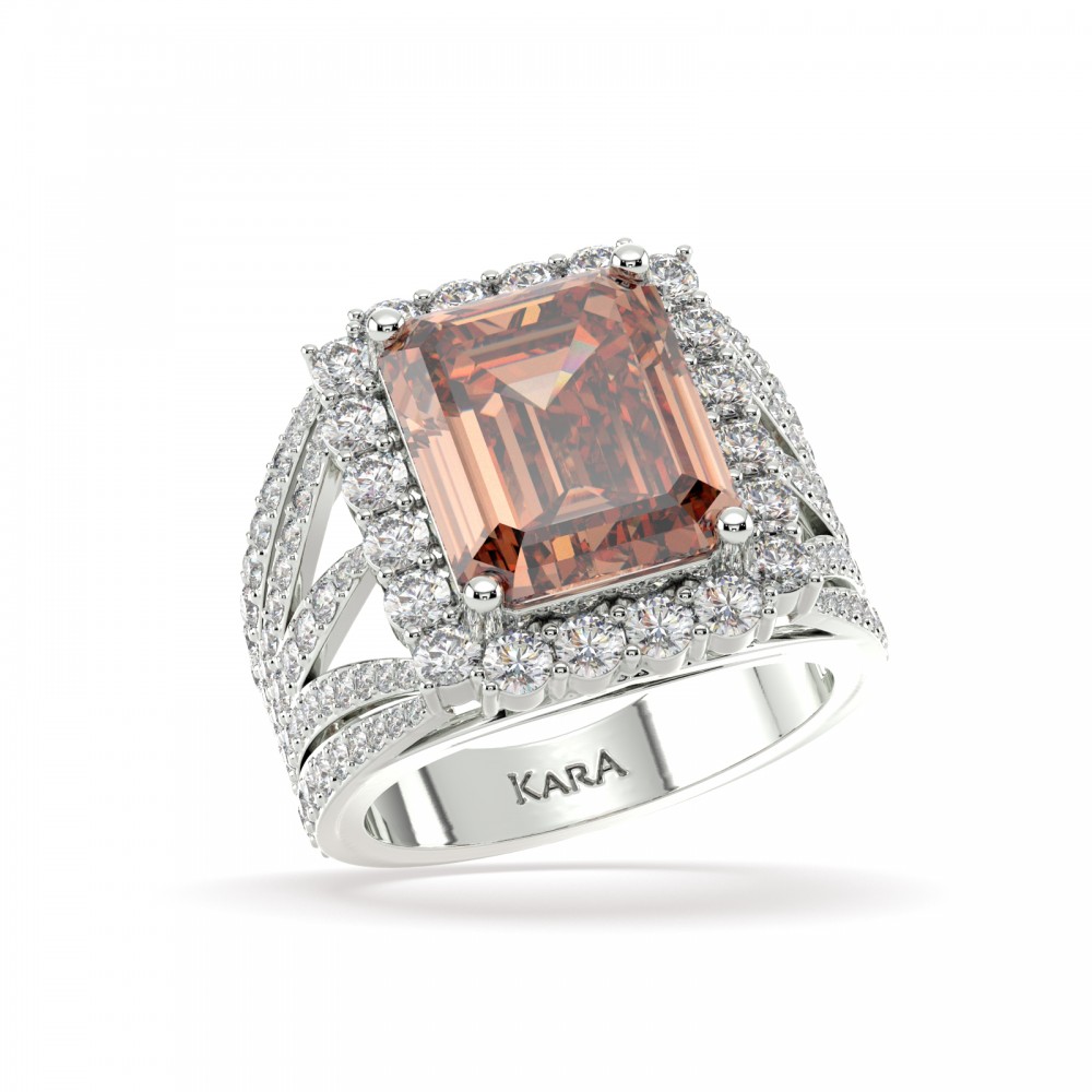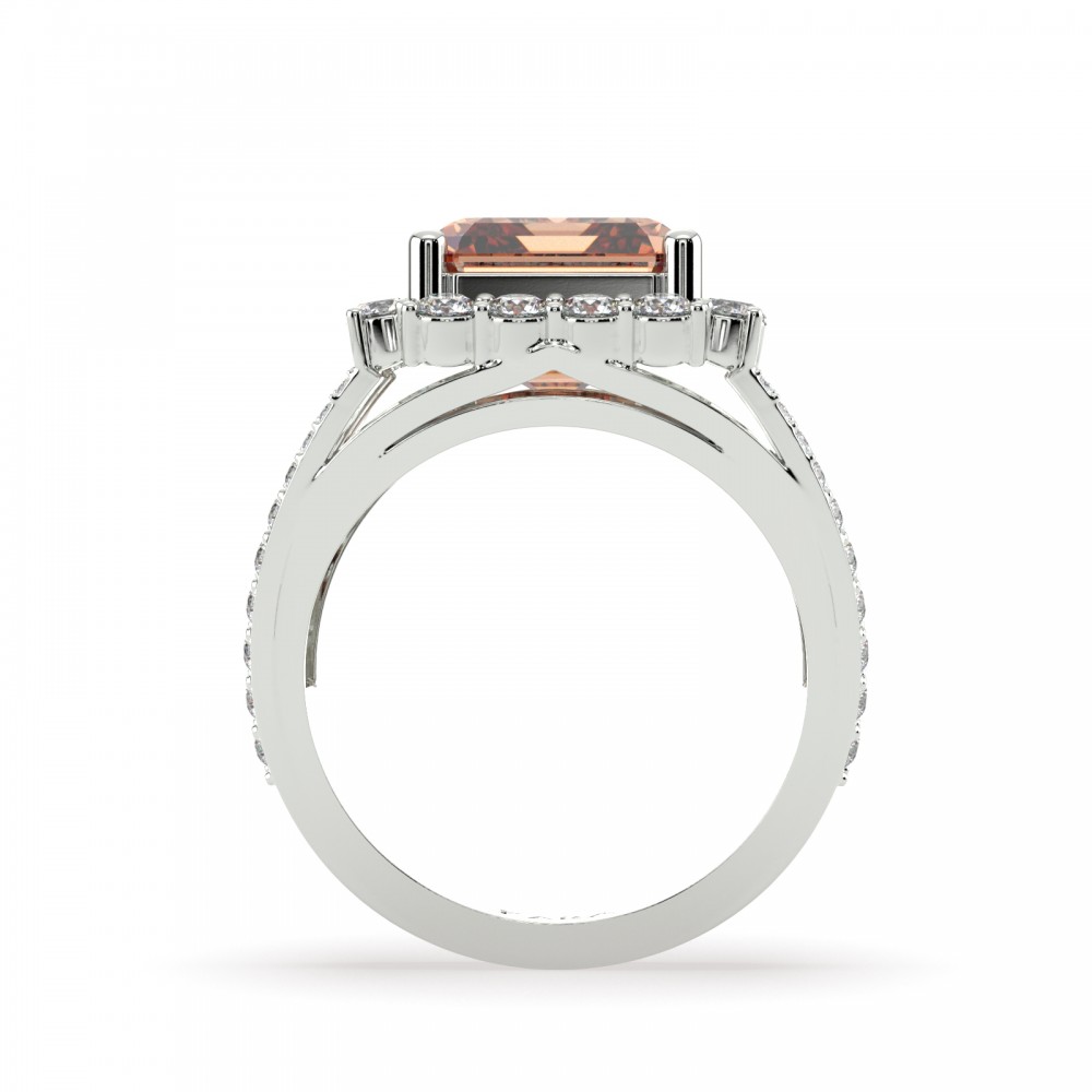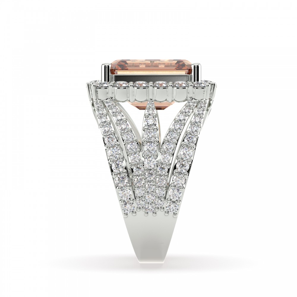 Inel din aur alb de 14K, cu Morganite central de 6.93 ct si diamante de 1.77 ct. Greutatea inelului este de aproximativ 10.74 grame.