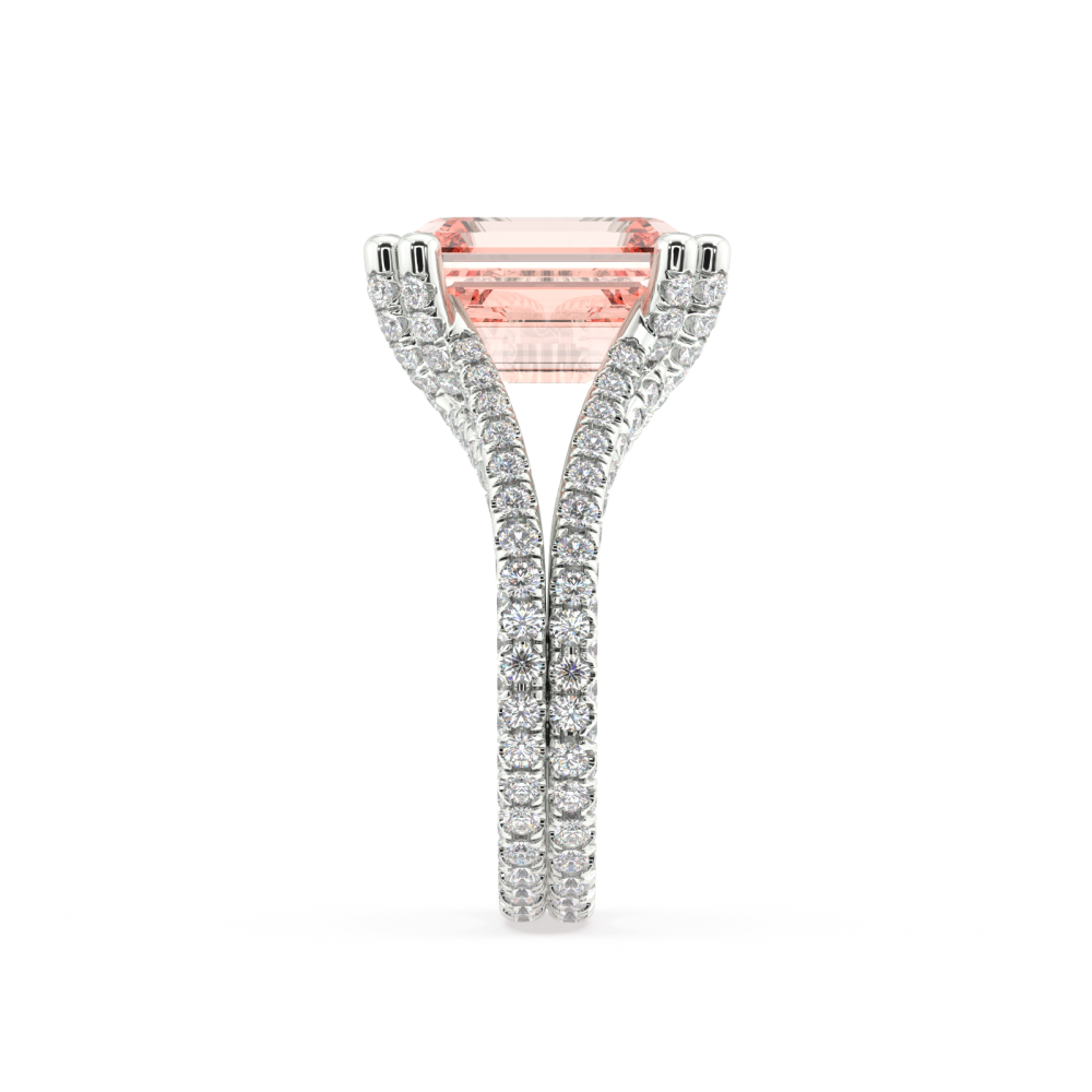 Inel cu Morganite Central Emerald Cut de 8ct si Diamante Laterale Rotunde de 2.03ct
