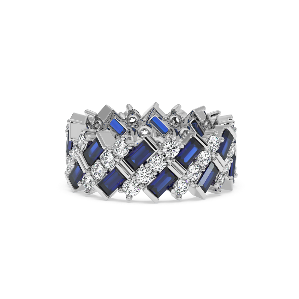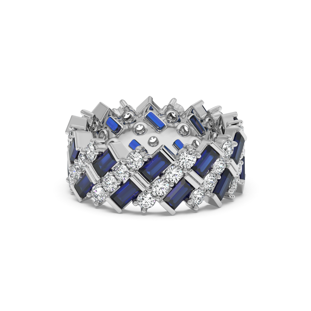 Inel cu Safire Baget de 0.53ct si Diamante Rotunde de 1.53ct