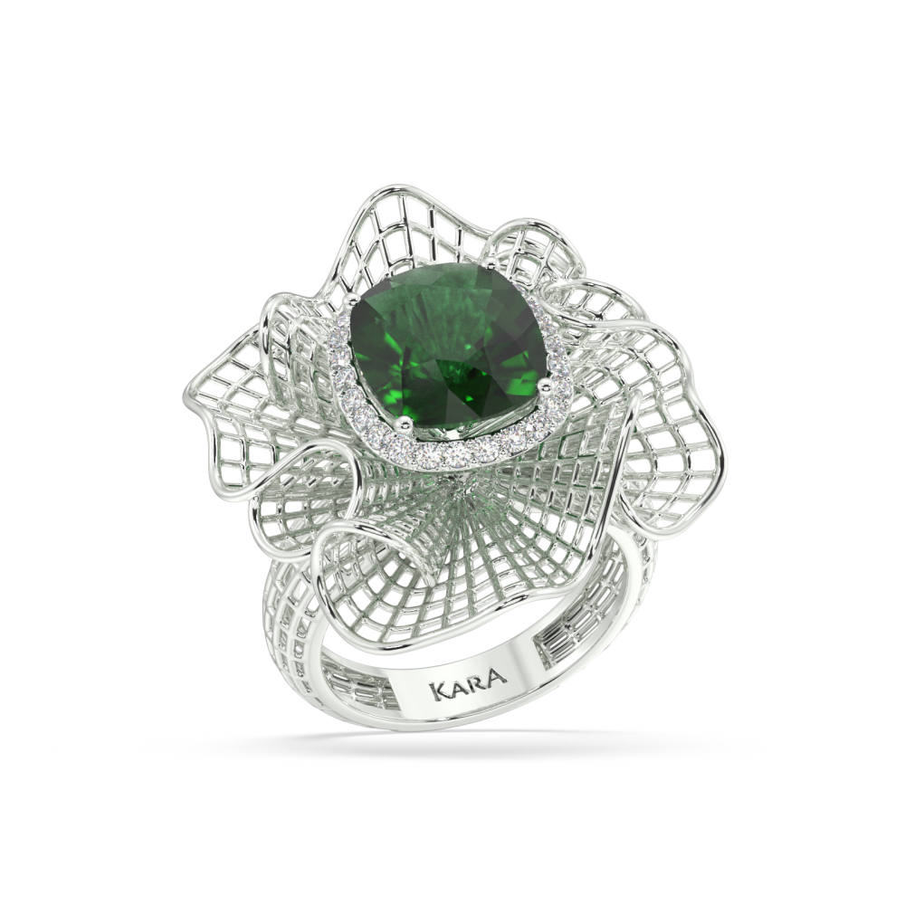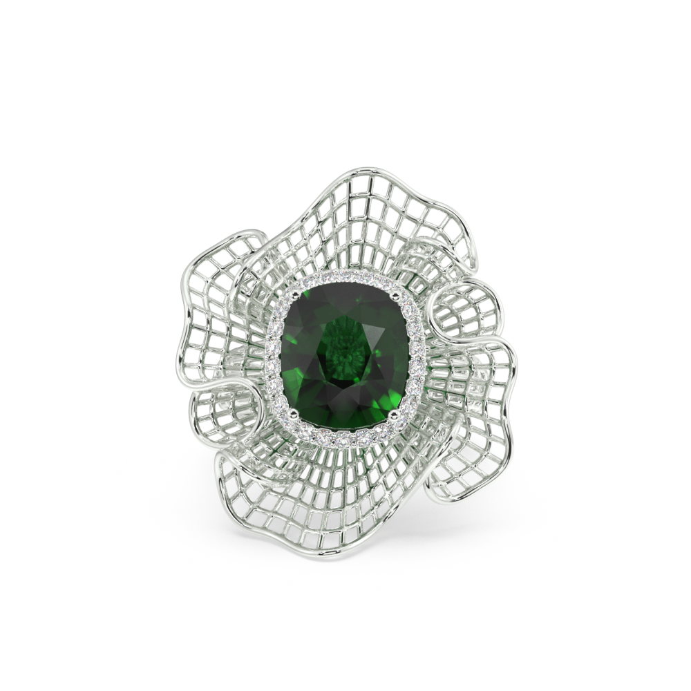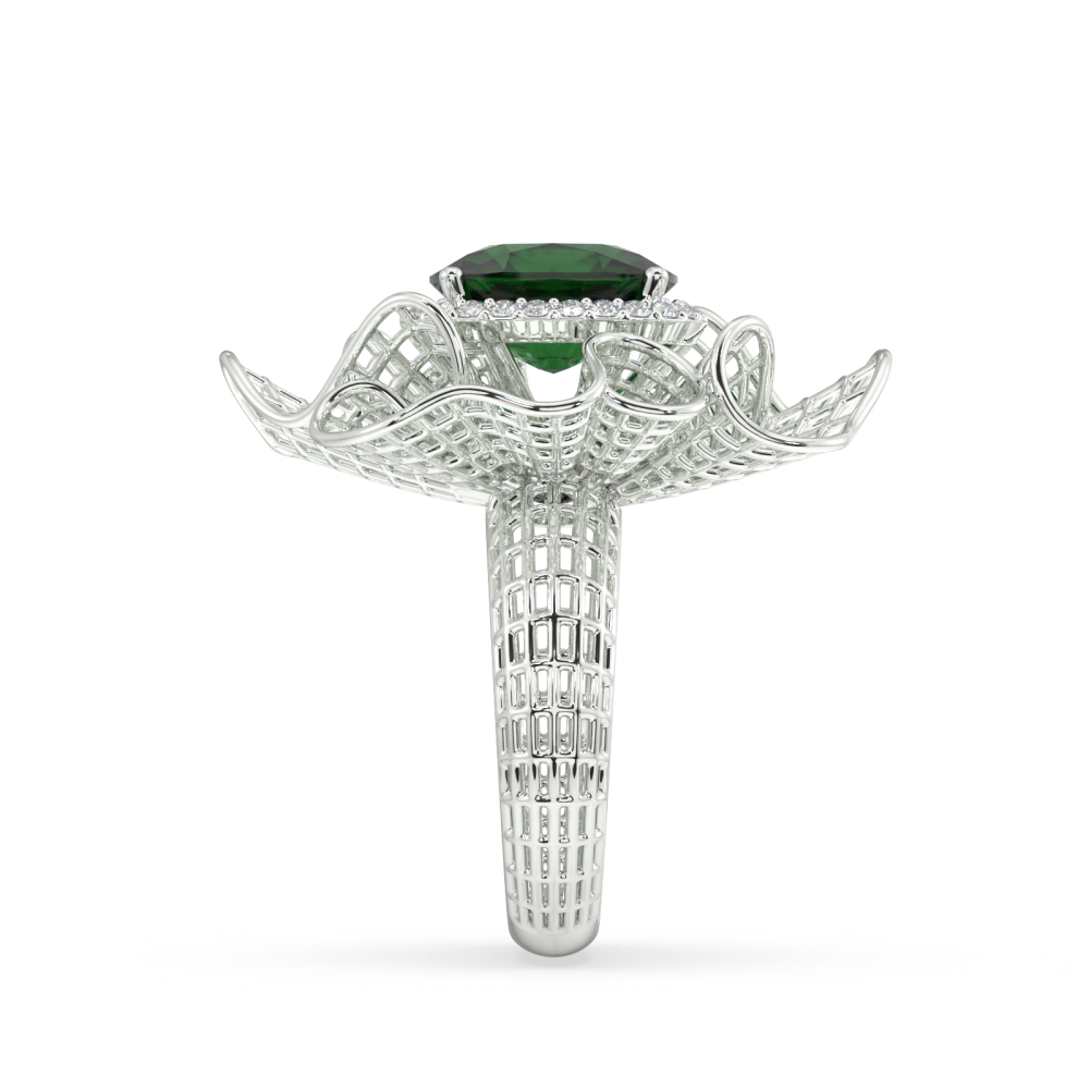 Inel din aur alb de 14K, cu diamante laterale de 0.21 ct si smarald central de 6.20 ct. Greutatea Inelului este de aproximativ 12.50 grame.
