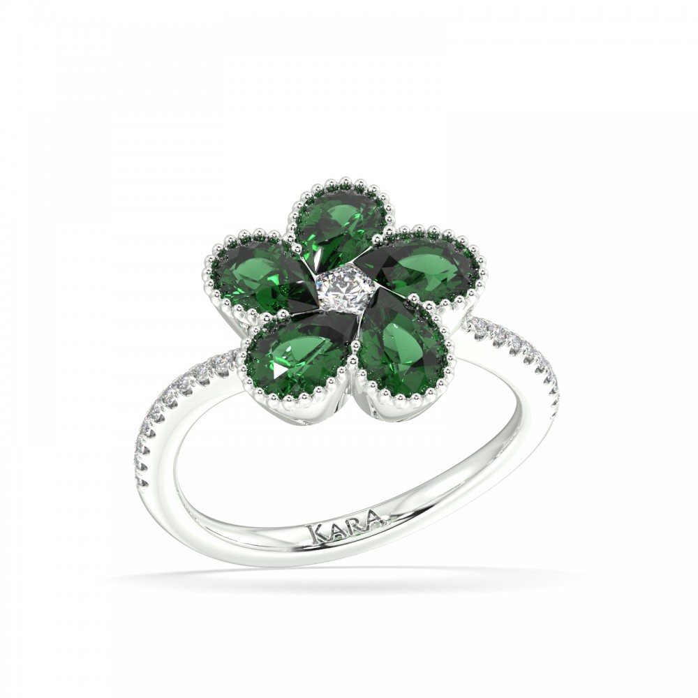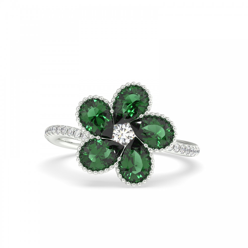 Inel din aur alb de 14k, cu smaralde de 1.77 ct si diamante rotunde de 0.22 ct. Greutatea inelului este de aproximativ 5 grame. Inelul se poate face pe comanda si din aur de 18K. Putem modifica design-ul in functie de bugetul dumneavoastra. Putem alege caracteristicile...