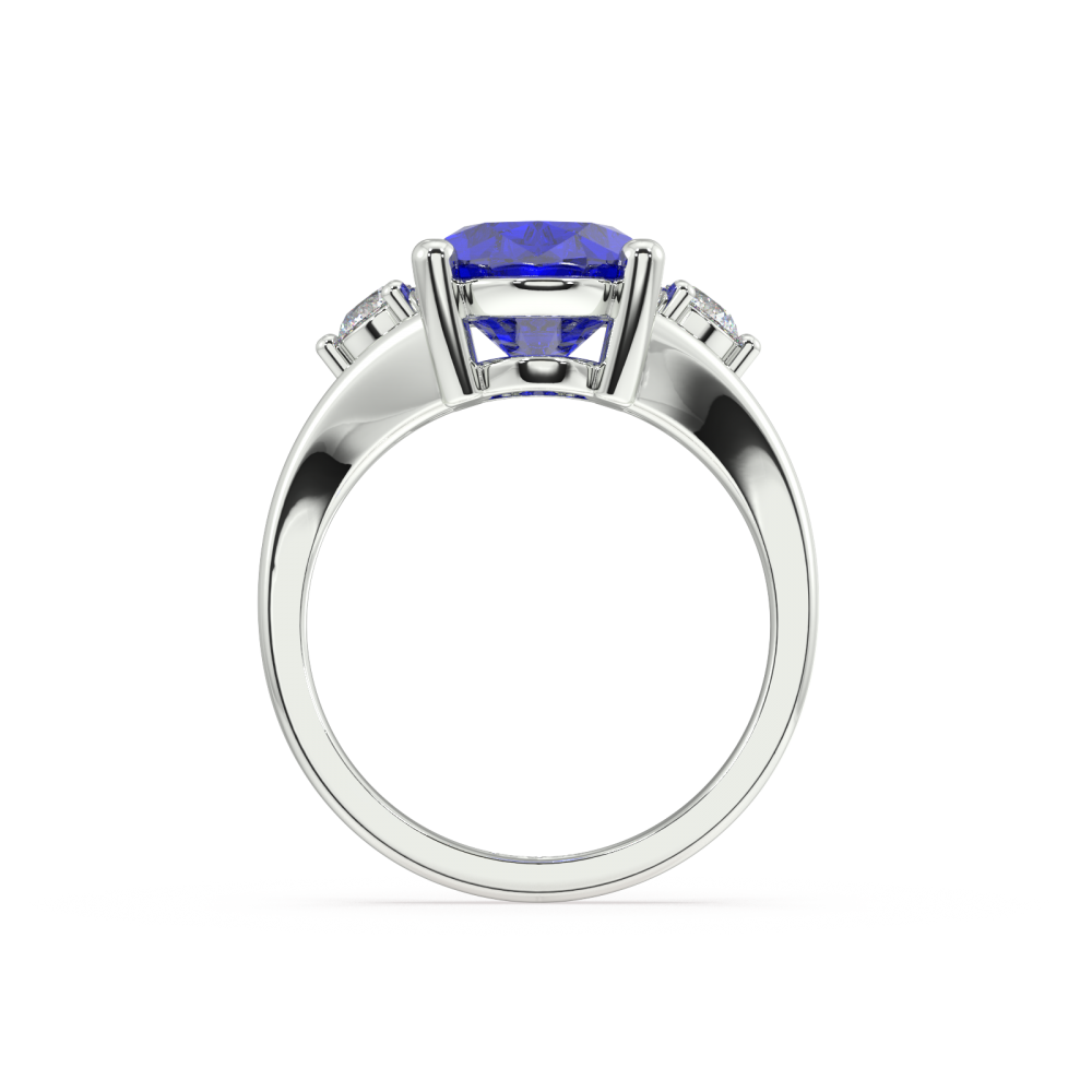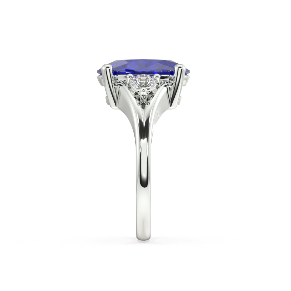 Inel din aur alb de 14K, cu Tanzanite Oval Cut central de 4.25ct si diamante rotunde laterale de 0.30ct. Greutatea inelului este de aproximativ 8.90 grame.