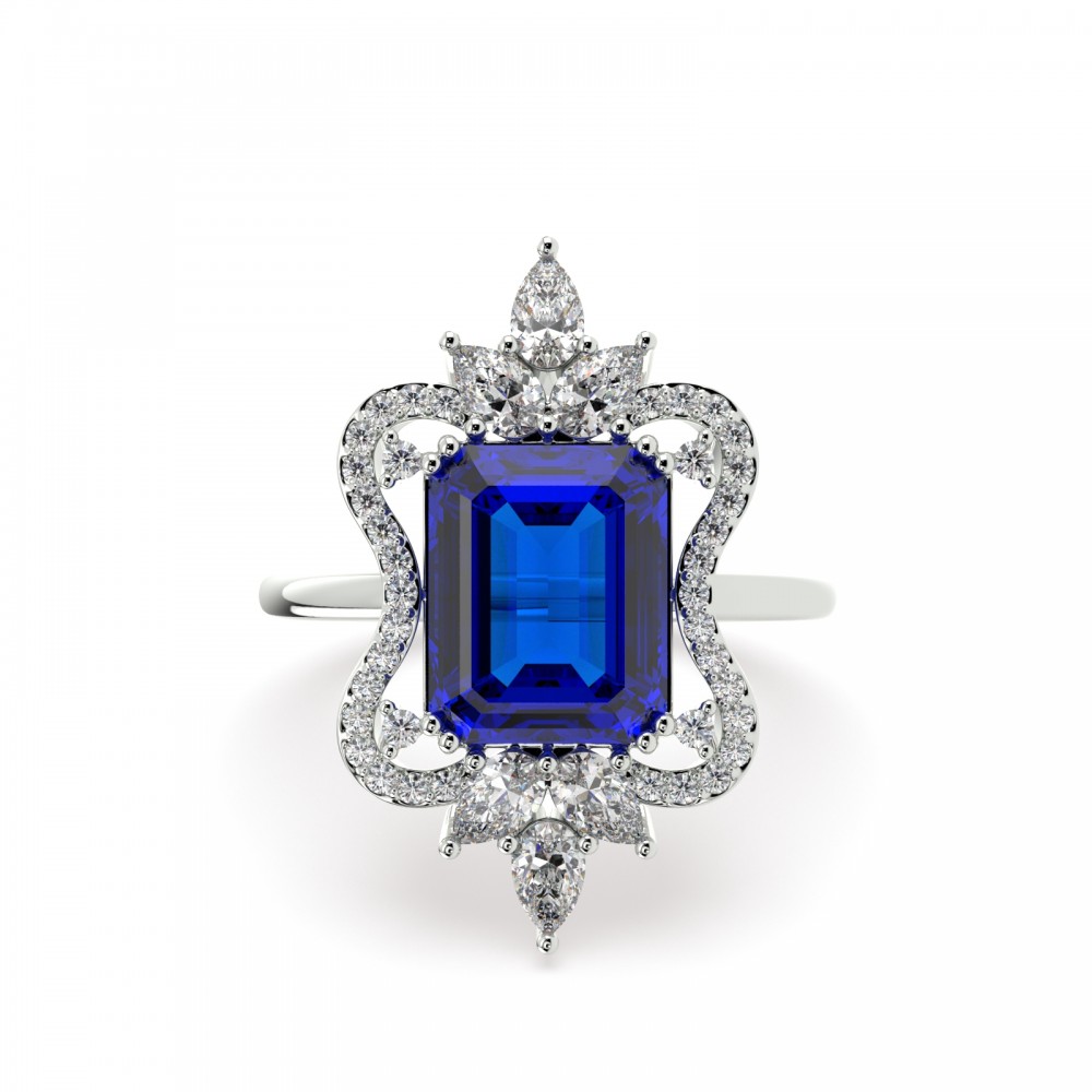 Inel din aur alb de 14K, cu diamante de 0.51ct si Tanzanite de 3.96ct. Greutatea inelului este de 7.11 grame.