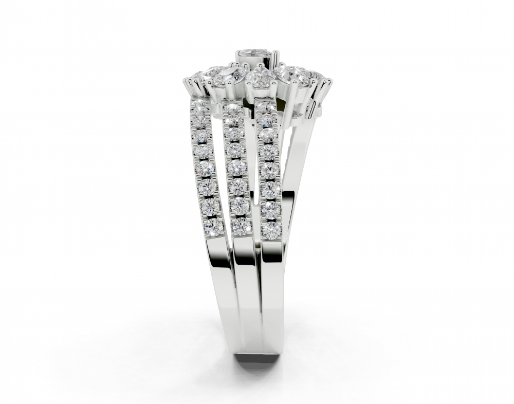 Inel din aur alb de 14K, cu un diamant Marquise Cut de 0.06ct, diamante Pear Cut de 0.66ct si diamante rotunde de 0.33ct. Greutatea inelului este de aproximativ 5 grame.