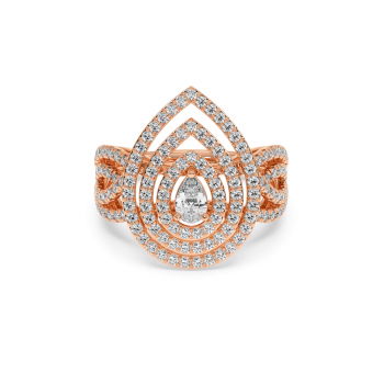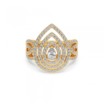 Inel din aur de 14 K cu un diamant central Pear cut de 0.25ct si diamante rotunde laterale de 1.21ct. Greutatea inelului este de aproximativ 6 grame.