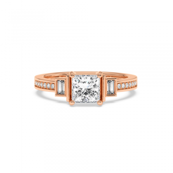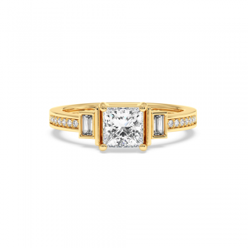 Inel cu un Diamant Central Princess Cut de 0.99ct, Diamante Baget de 0.06ct si Diamante Rotunde de 0.07ct