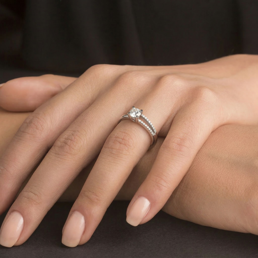 Inel de logodna cu diamant central de 0.39 ct si diamante laterale de 0.17 ct