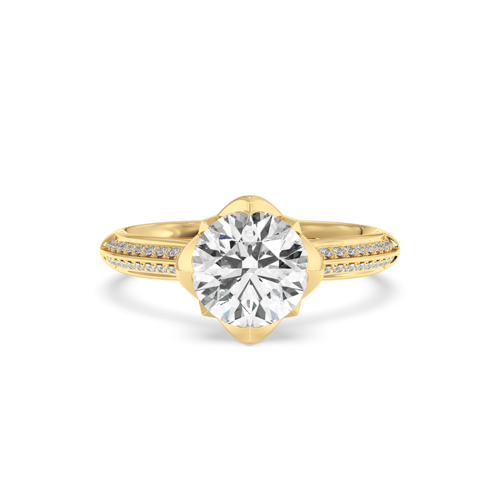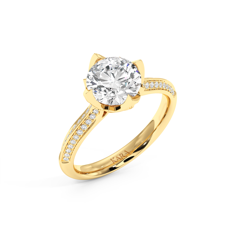 Inel din aur de 14K, cu diamant central de 1 ct si diamante laterale de 0.22 ct. Greutatea inelului este de aproximativ 3.03 grame. Gramajele si caratajele sunt aproximative. Se poate face pe comanda si din aur de 18K. Putem modifica designul in functie de bugetul dumneavoastra.