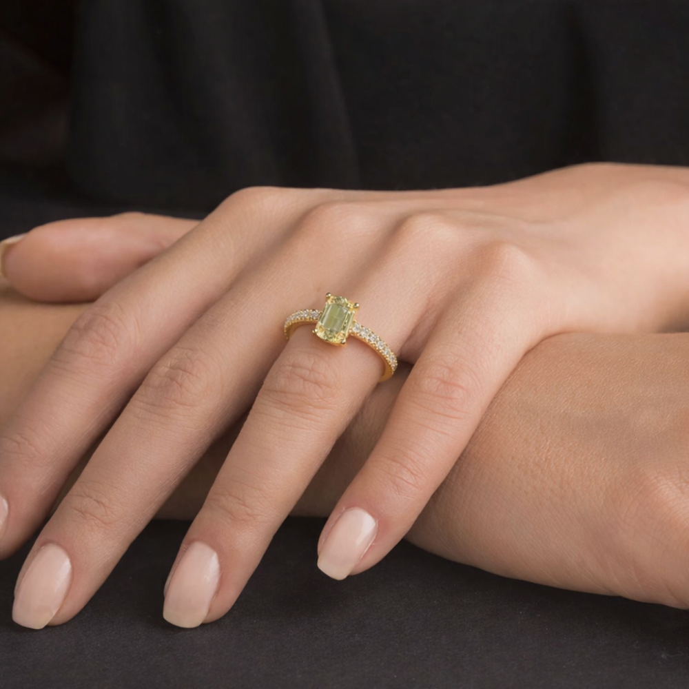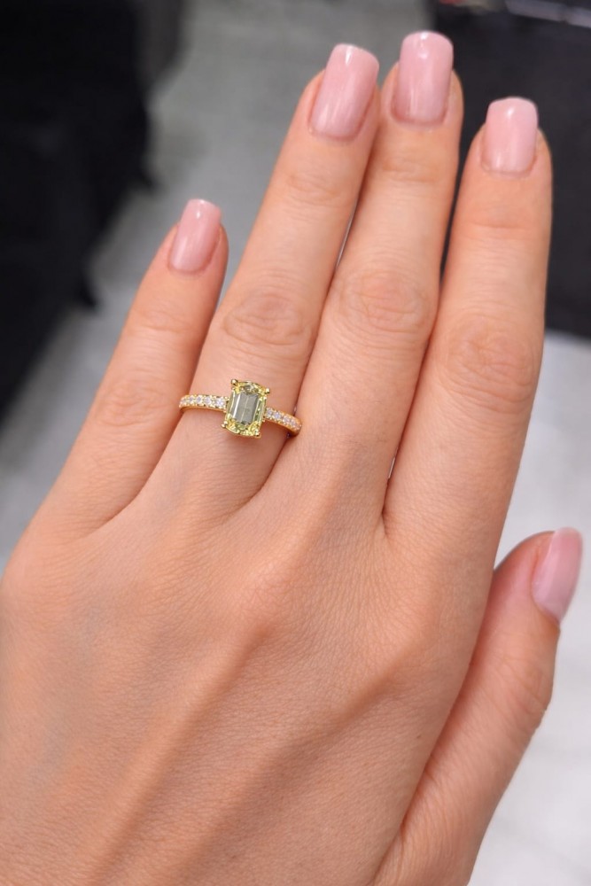 Inel de logodna cu diamant central fancy de 1.11 ct si diamante laterale de 0.22 ct