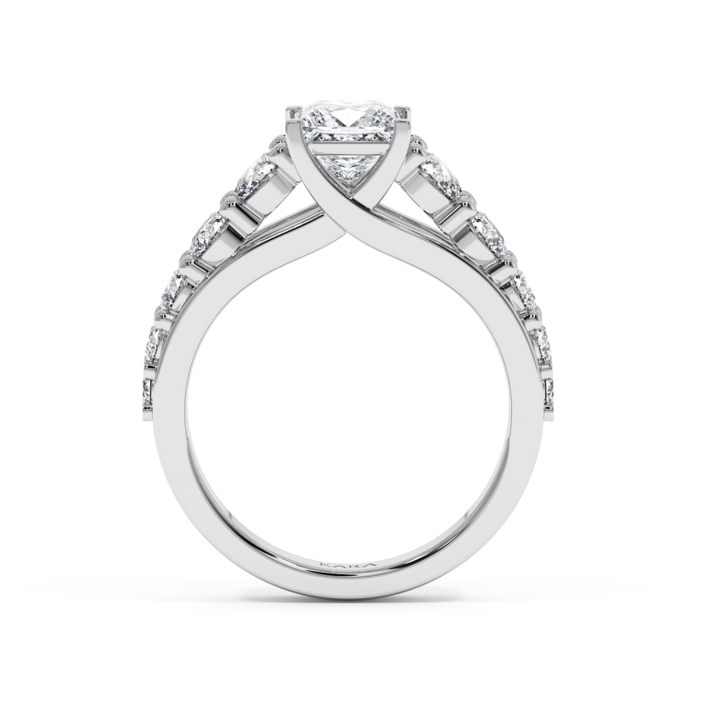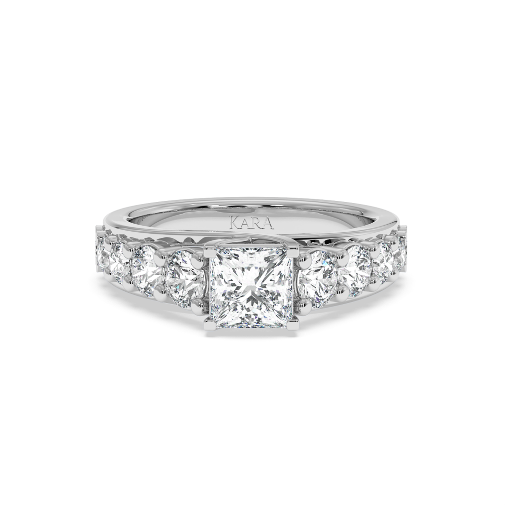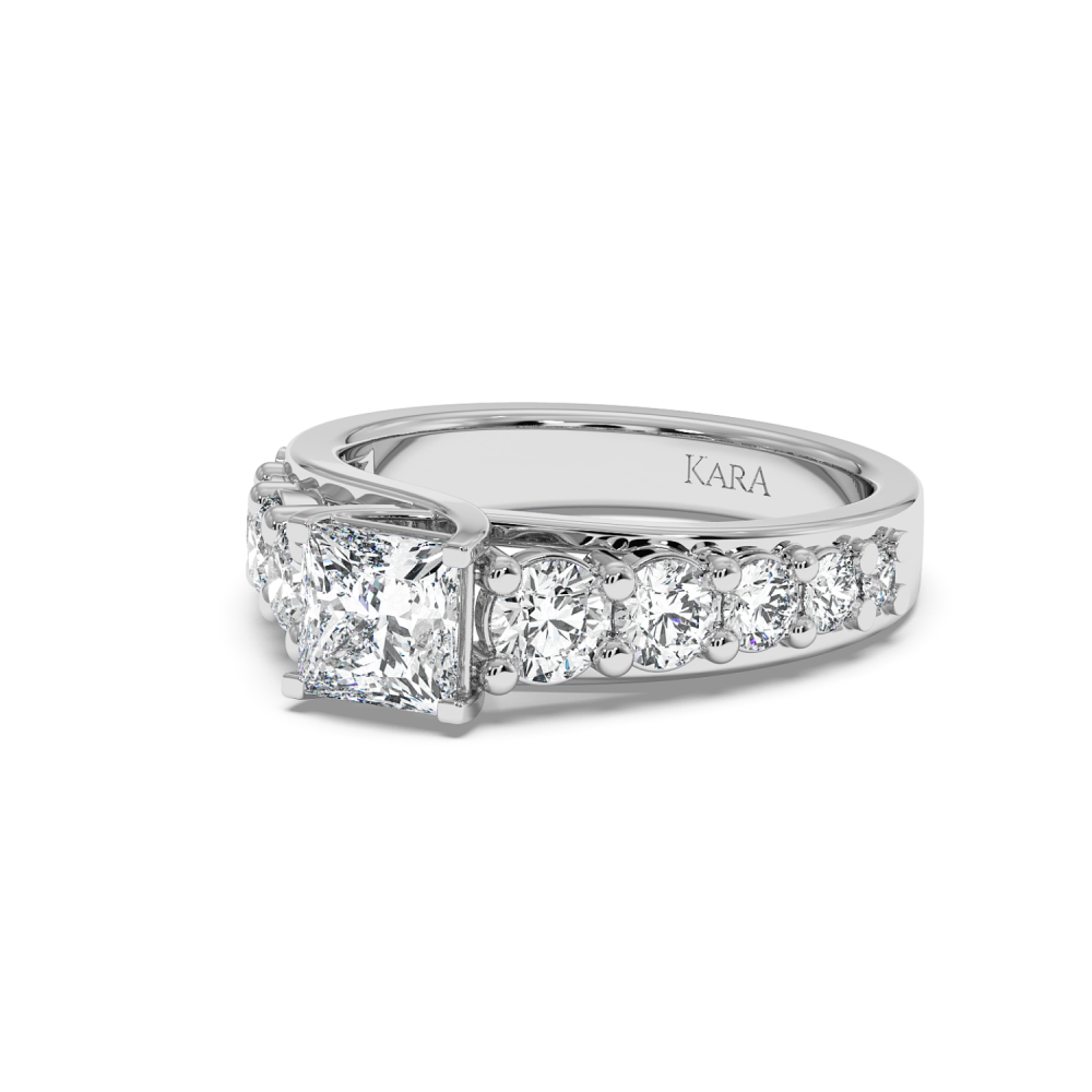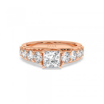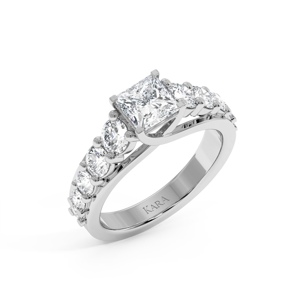 Inel de Logodna cu Diamant central Princess Cut de 1ct si Diamante laterale rotunde de 1.23ct