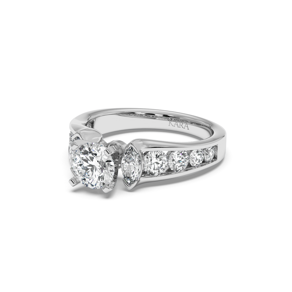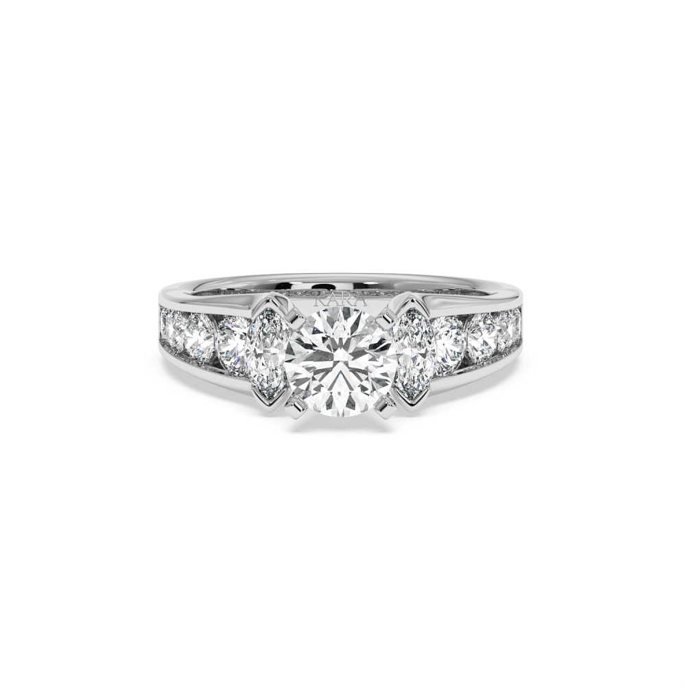 Inel de Logodna cu Diamant Central Rotund de 0.92ct, Diamante Marquise Cut de 0.33ct si Diamante Rotunde Laterale de 0.85ct