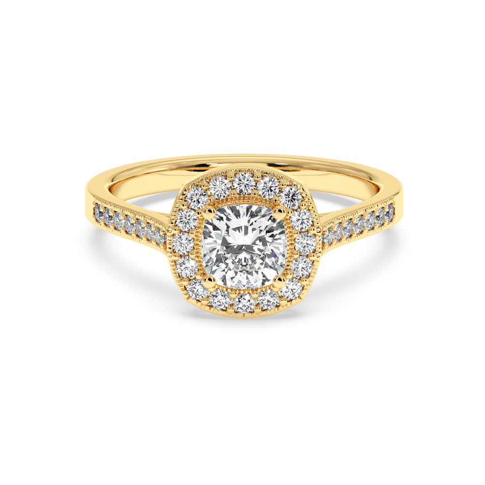 Inel de logodna cu Diamant Cushion de 0.70 ct si diamante laterale de 0.28 ct