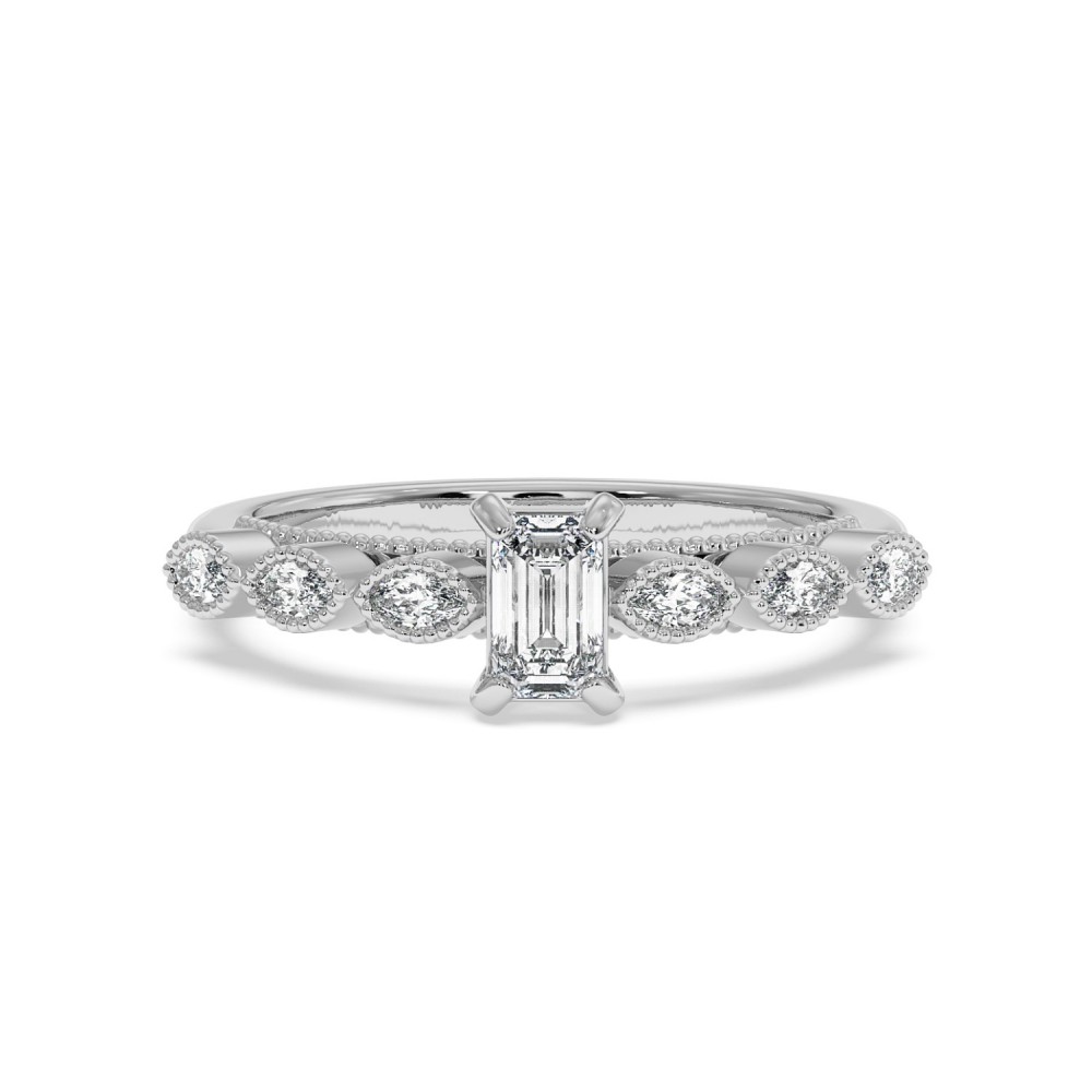 Inel de logodna cu Diamant Emerald de 0.30 ct si diamante laterale de 0.26 ct