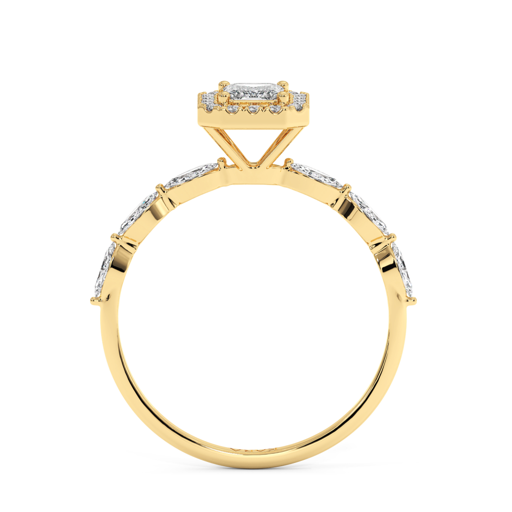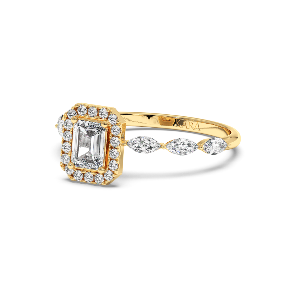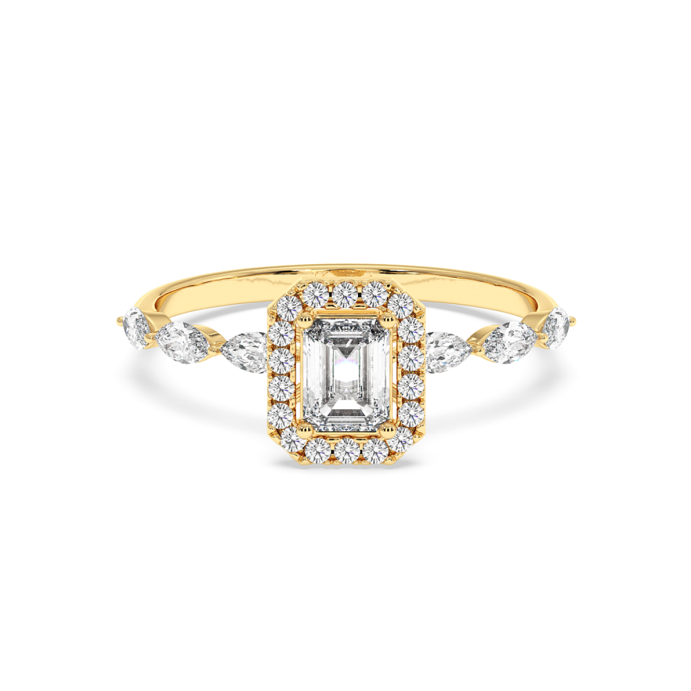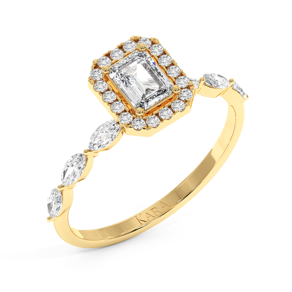 Inel de logodna cu Diamant Emerald de 0.30 ct si diamante laterale Marquise de 0.21 ct si rotunde de 0.10 ct
