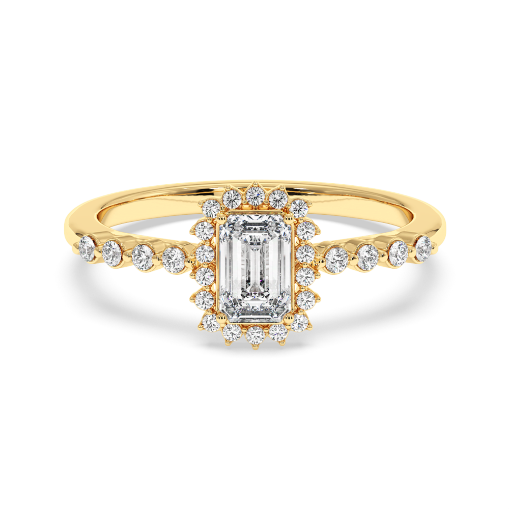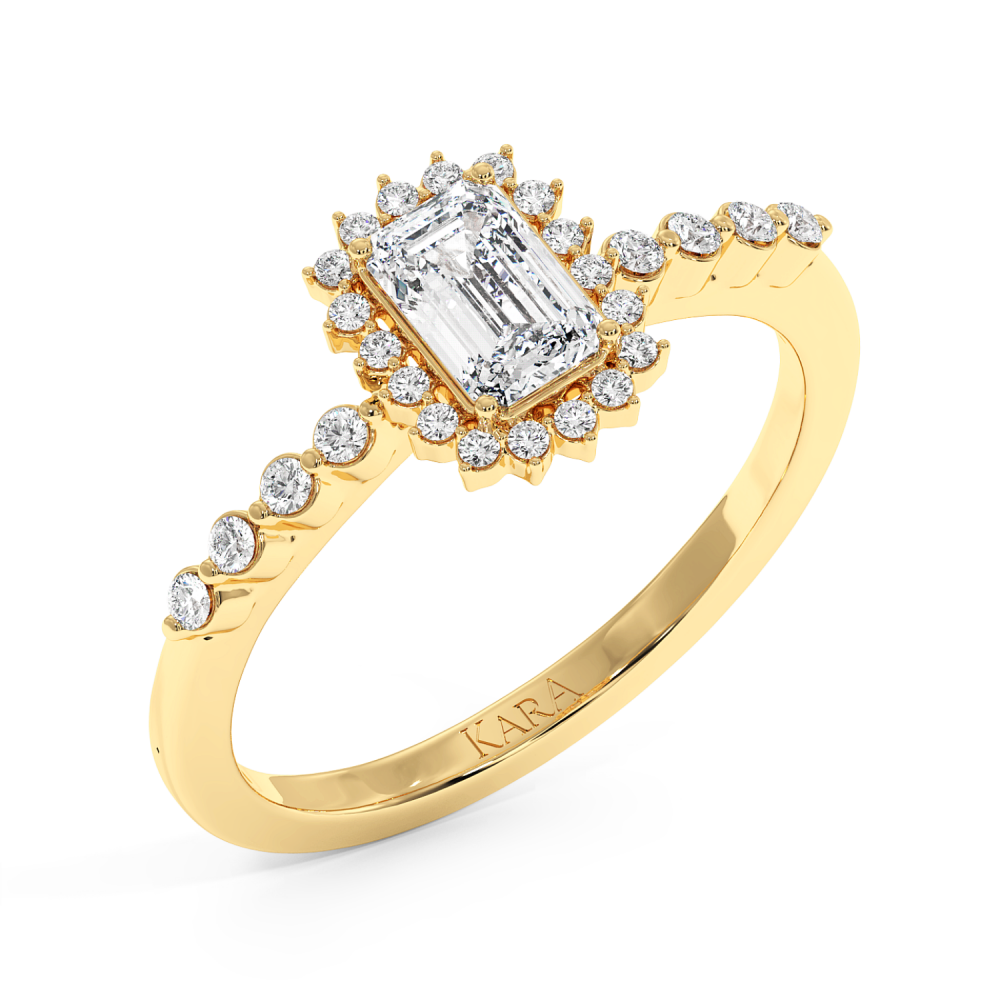 Inel de logodna cu Diamant Emerald de 0.50 ct si diamante laterale de 0.15 ct