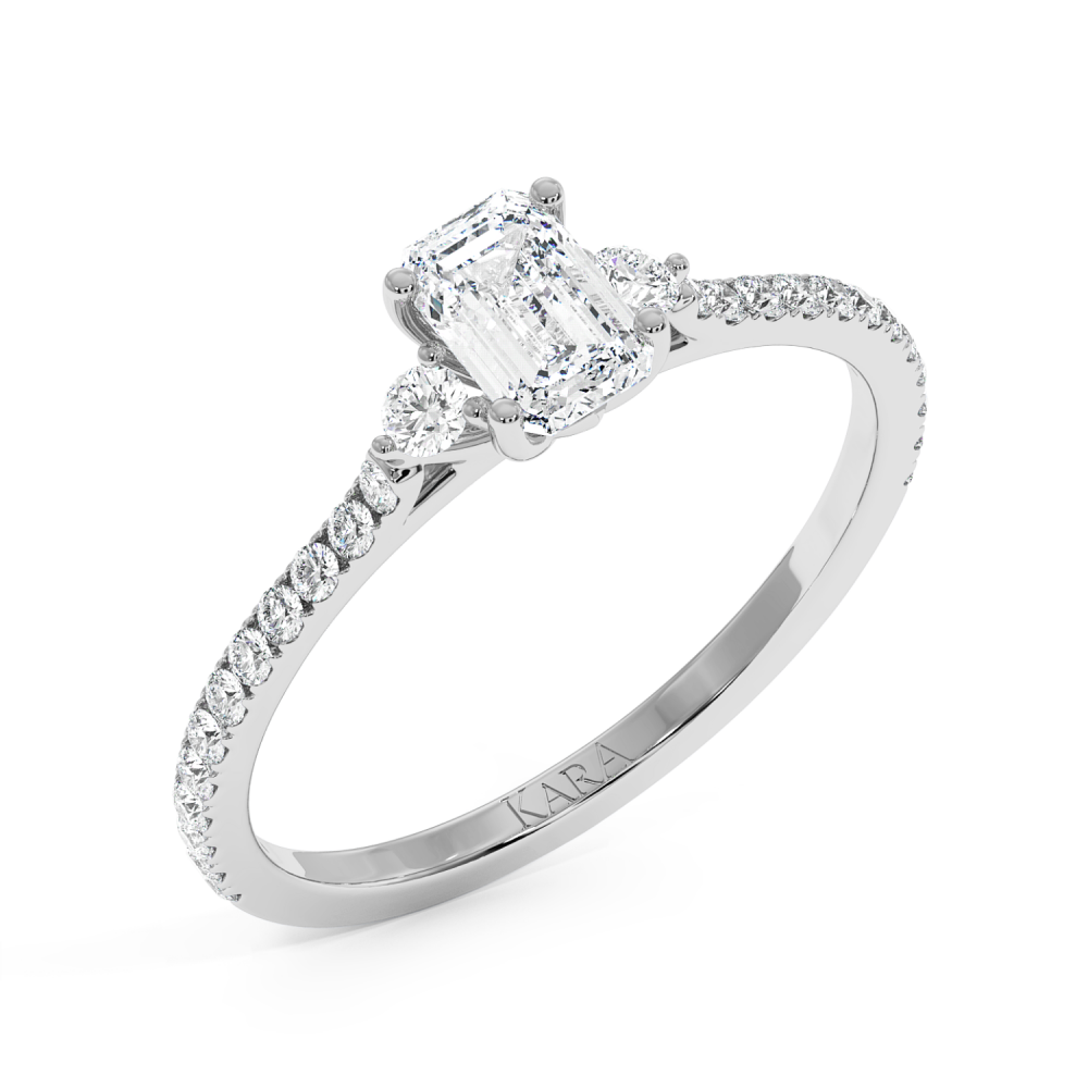 Inel de logodna cu Diamant Emerald de 0.50 ct si diamante laterale de 0.23 ct