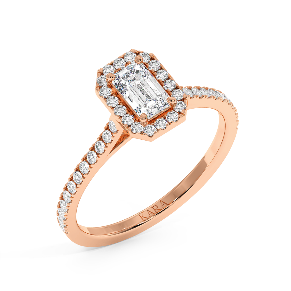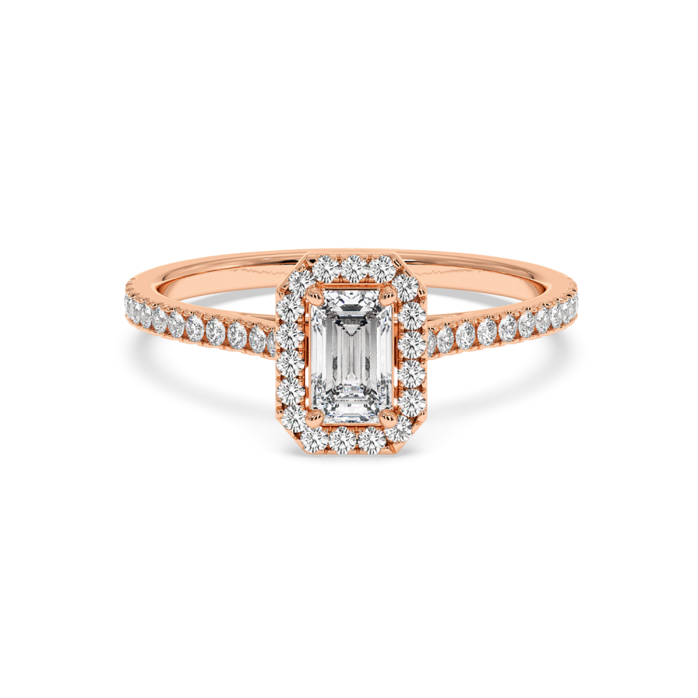 Inel de logodna cu Diamant Emerald de 0.50 ct si diamante laterale de 0.24 ct
