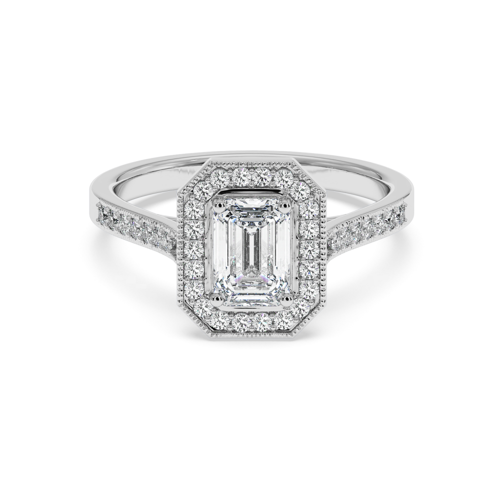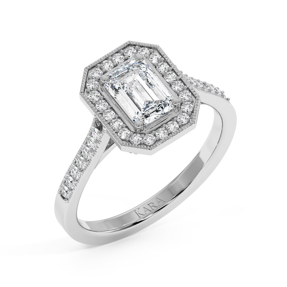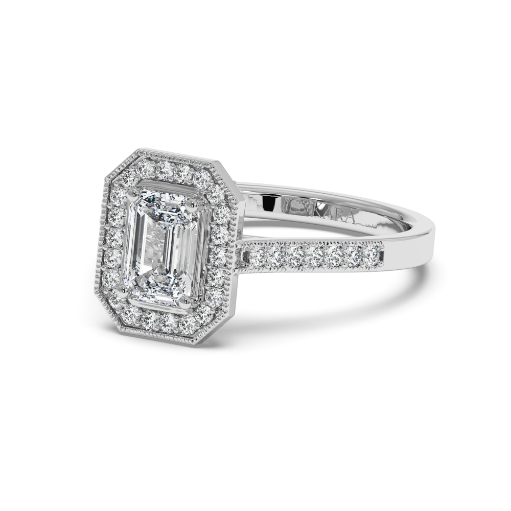 Inel de logodna cu Diamant Emerald de 0.71 ct si diamante laterale de 0.25 ct