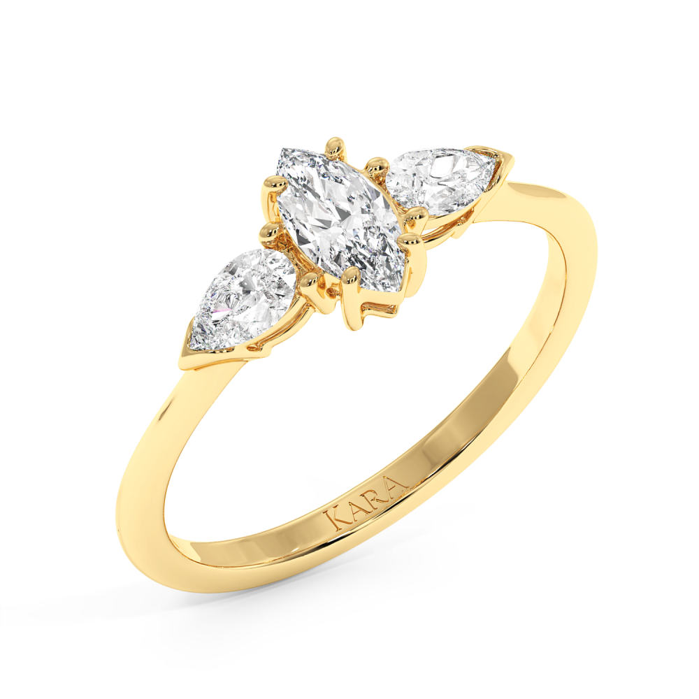 Inel de logodna cu Diamant Marquise de 0.30 ct si diamante laterale Pear de 0.19 ct