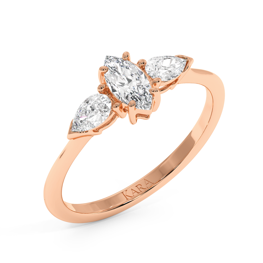 Inel de logodna cu Diamant Marquise de 0.30 ct si diamante laterale Pear de 0.19 ct