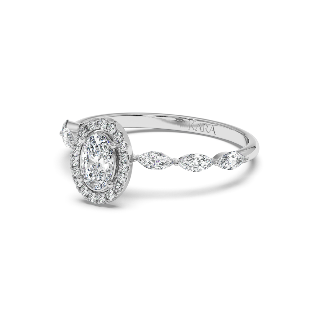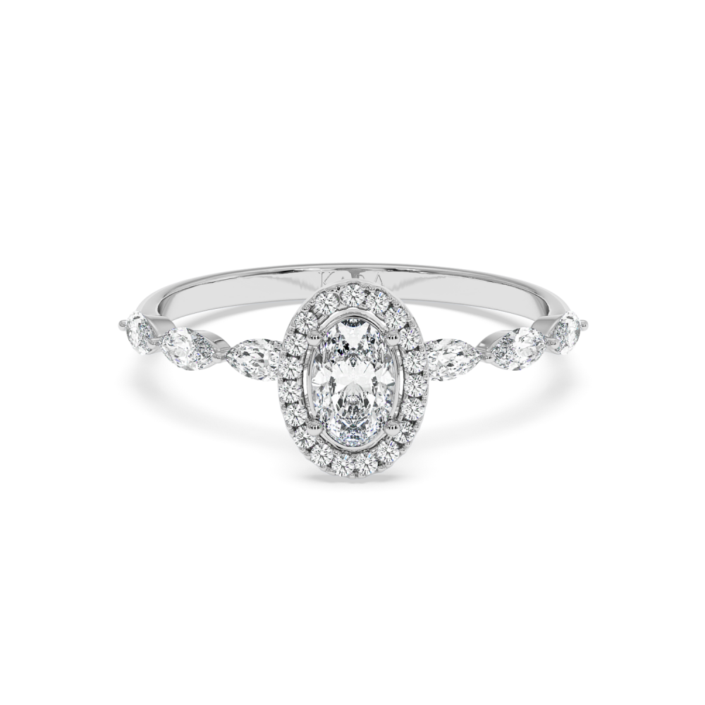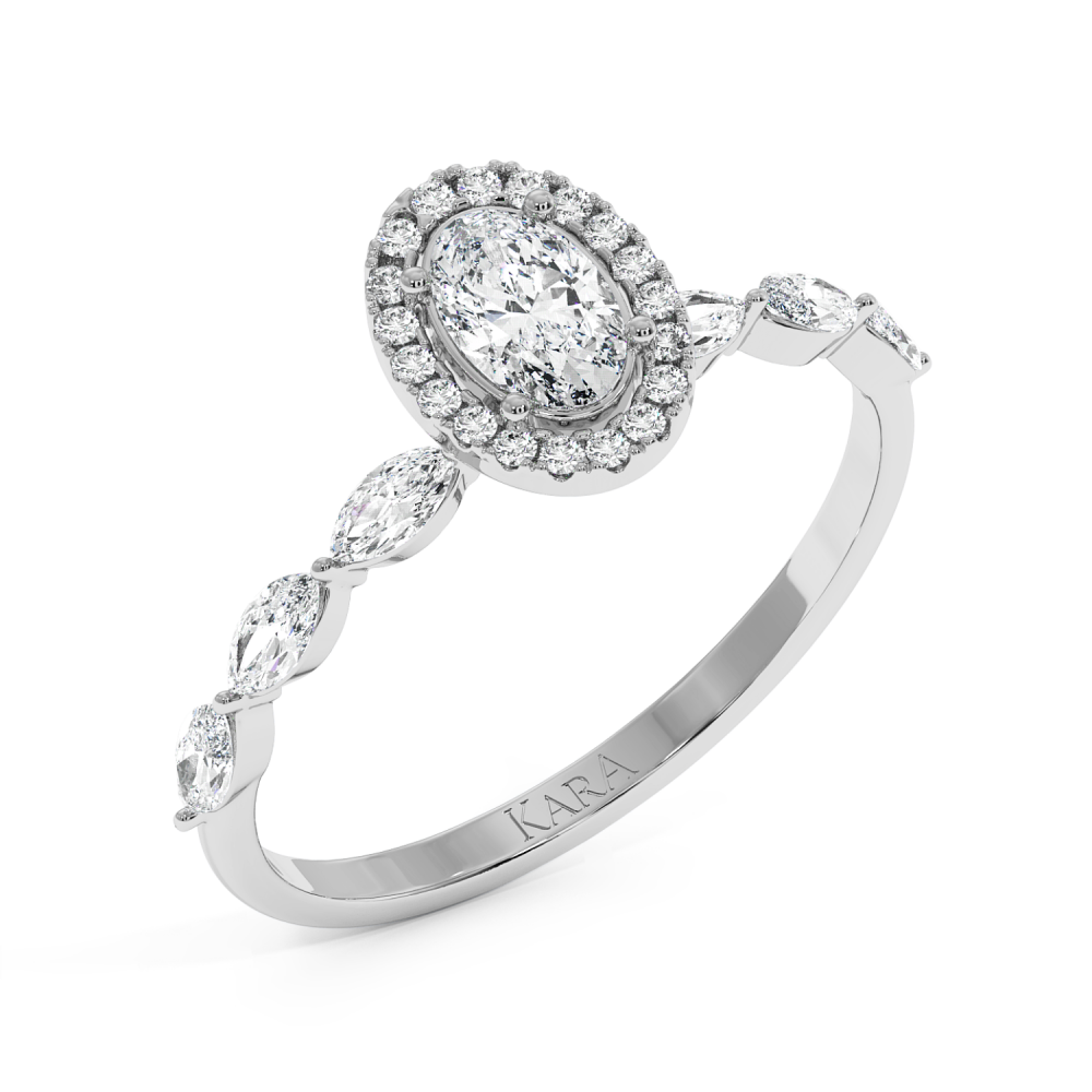 Inel de logodna cu Diamant Oval de 0.30 ct si diamante laterale Marquise de 0.21 ct si rotunde de 0.06 ct