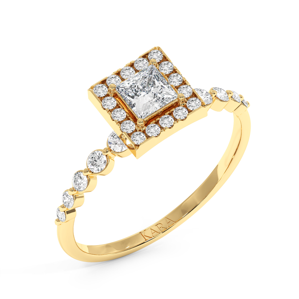 Inel de logodna cu Diamant Princess de 0.30 ct si diamante laterale de 0.31 ct