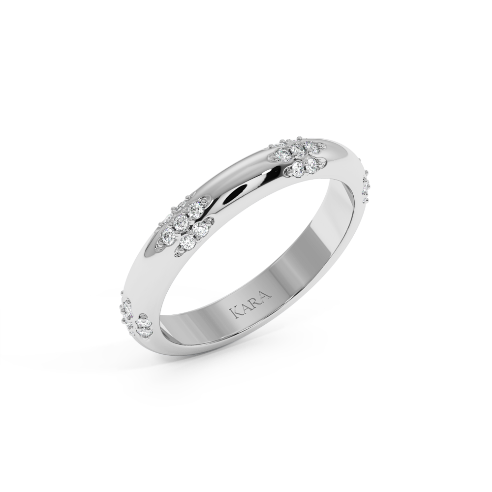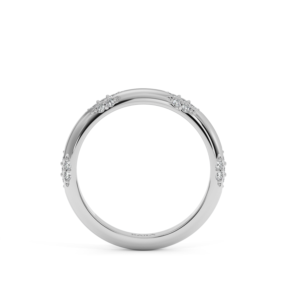 Inelul/Verigheta Eternity din aur alb de 14 K cu diamante de 0.21 ct. Greutatea este de 3.47 grame. Se poate face pe comanda si din aur de 18K. Putem modifica design-ul in functie de bugetul dumneavoastra. Putem alege caracteristicile diamantelor (taietura, culoarea, claritate).