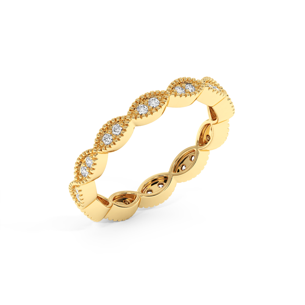 Inel Verigheta Eternity din aur de 14K cu diamante de 0.24. Greutatea inelului este de aproximativ 2.69 grame. Gramajele si caratajele sunt aproximative. Inelul se poate face pe comanda si din aur de 18K. Putem modifica designul in functie de bugetul dumneavoastra.