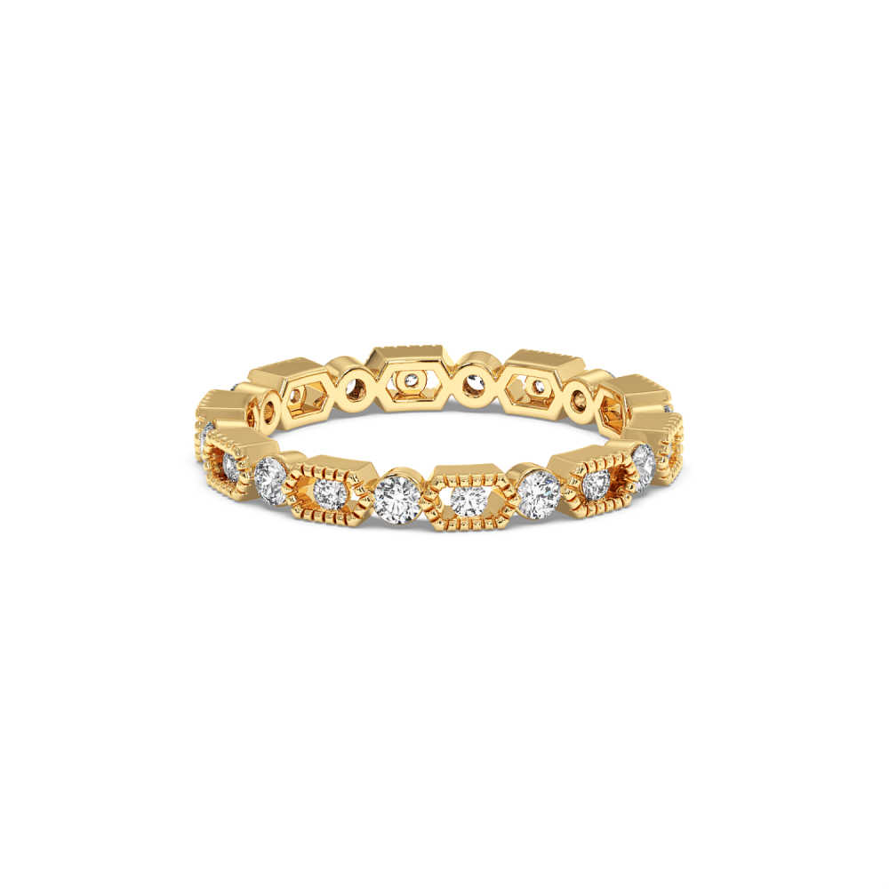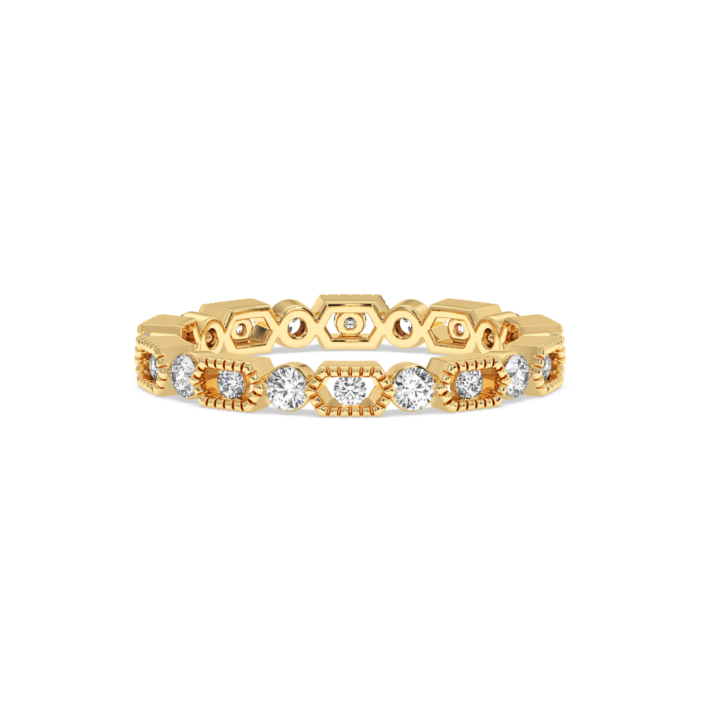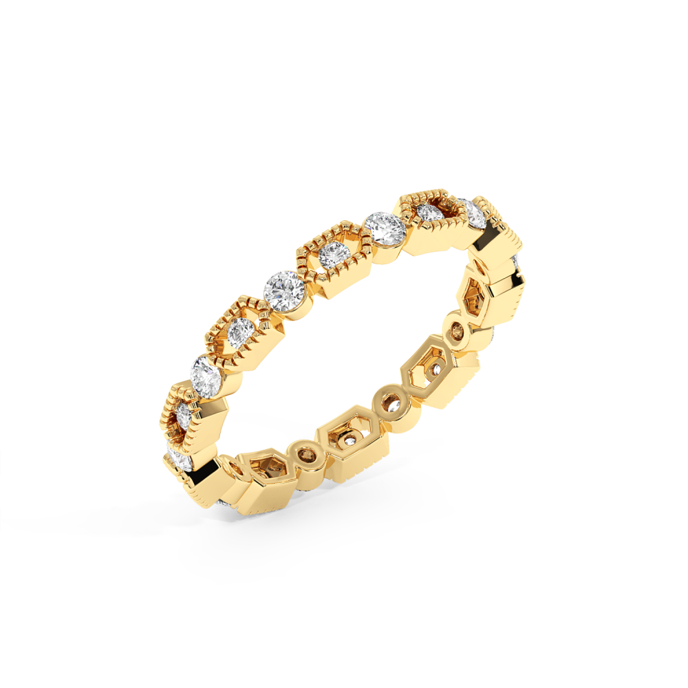 Inel Verigheta Eternity din aur de 14K cu diamante de 0.55ct. Greutatea inelului este de aproximativ 2.12 grame. Gramajele si caratajele sunt aproximative. Inelul se poate face pe comanda si din aur de 18K. Putem modifica designul in functie de bugetul dumneavoastra.