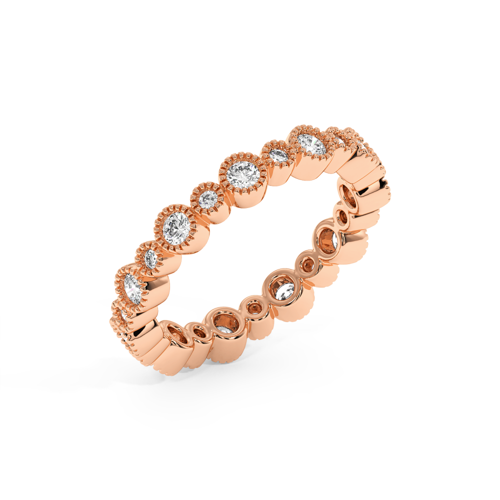 Inelul/Verigheta Eternity din aur alb de 14 K cu diamante de 0.8 ct. Greutatea este de 2.97 grame. Se poate face pe comanda si din aur de 18K. Putem modifica designul in functie de bugetul dumneavoastra. Putem alege caracteristicile diamantelor (taietura, culoarea, claritate).