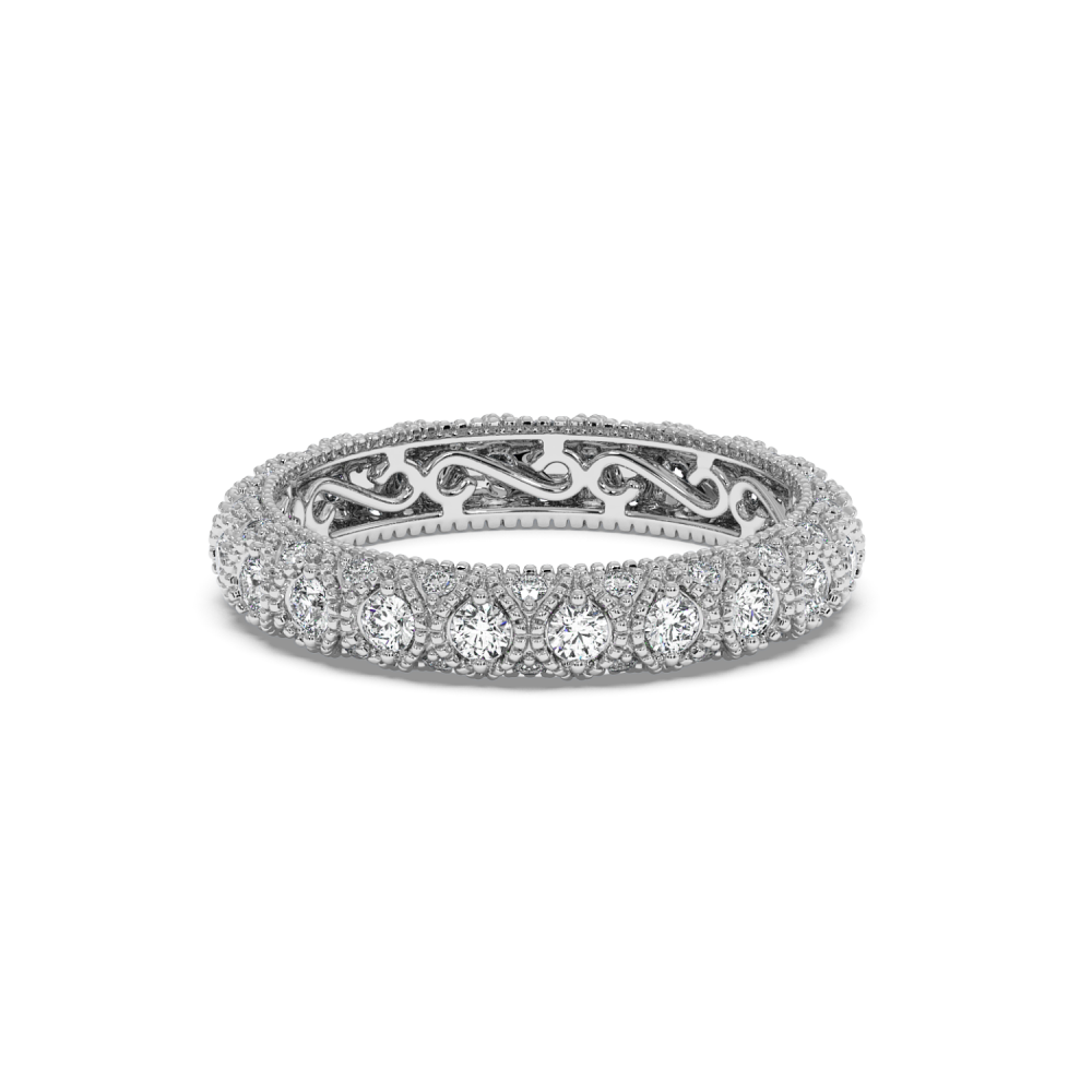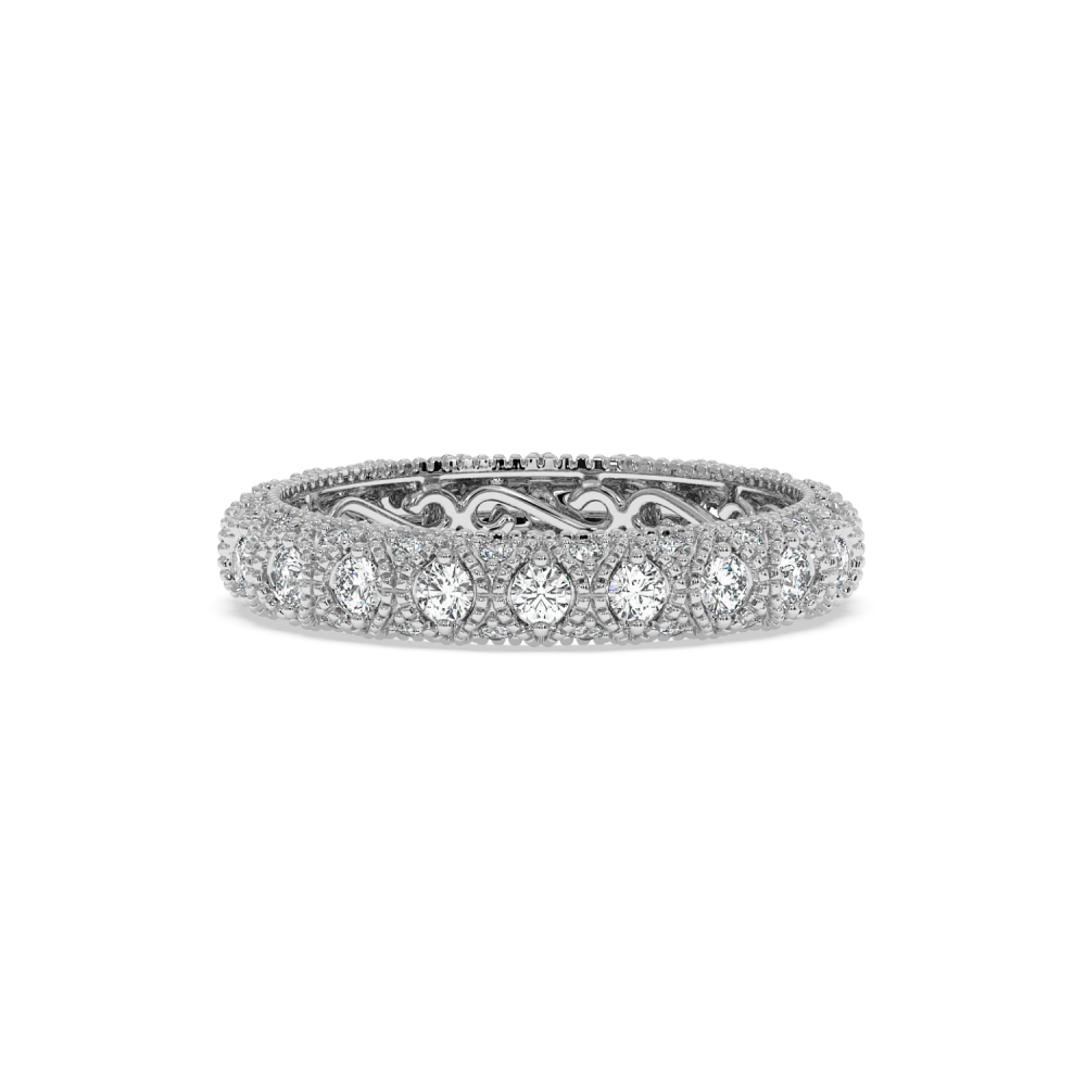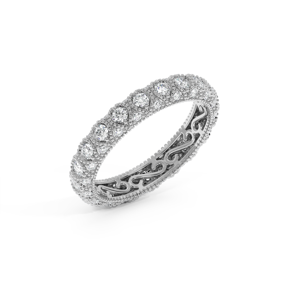 Inelul/Verigheta Eternity din aur alb de 14 K cu diamante 1ct. Greutatea este de 2.89 grame. Se poate face pe comanda si din aur de 18K. Putem modifica designul in functie de bugetul dumneavoastra. Putem alege caracteristicile diamantelor (taietura, culoarea, claritate).