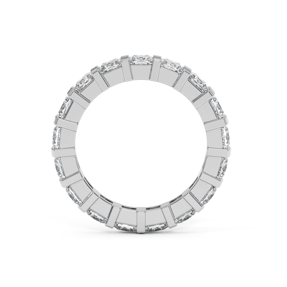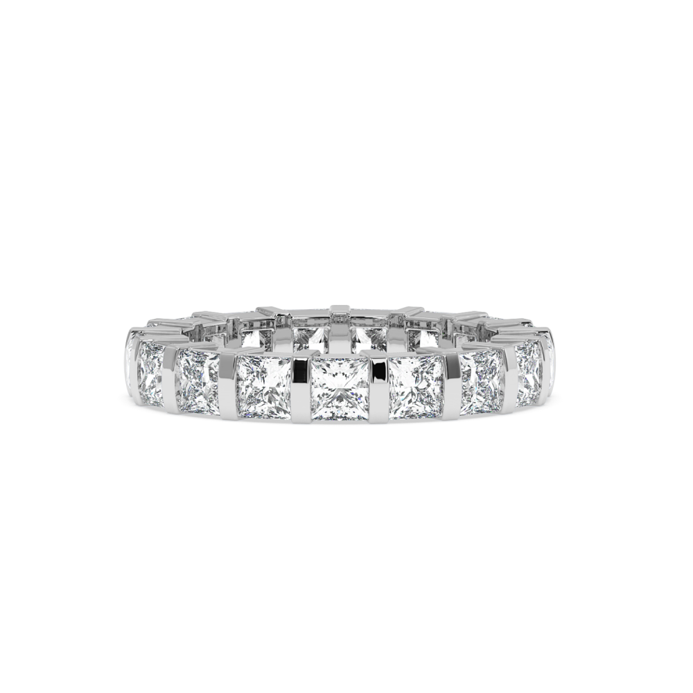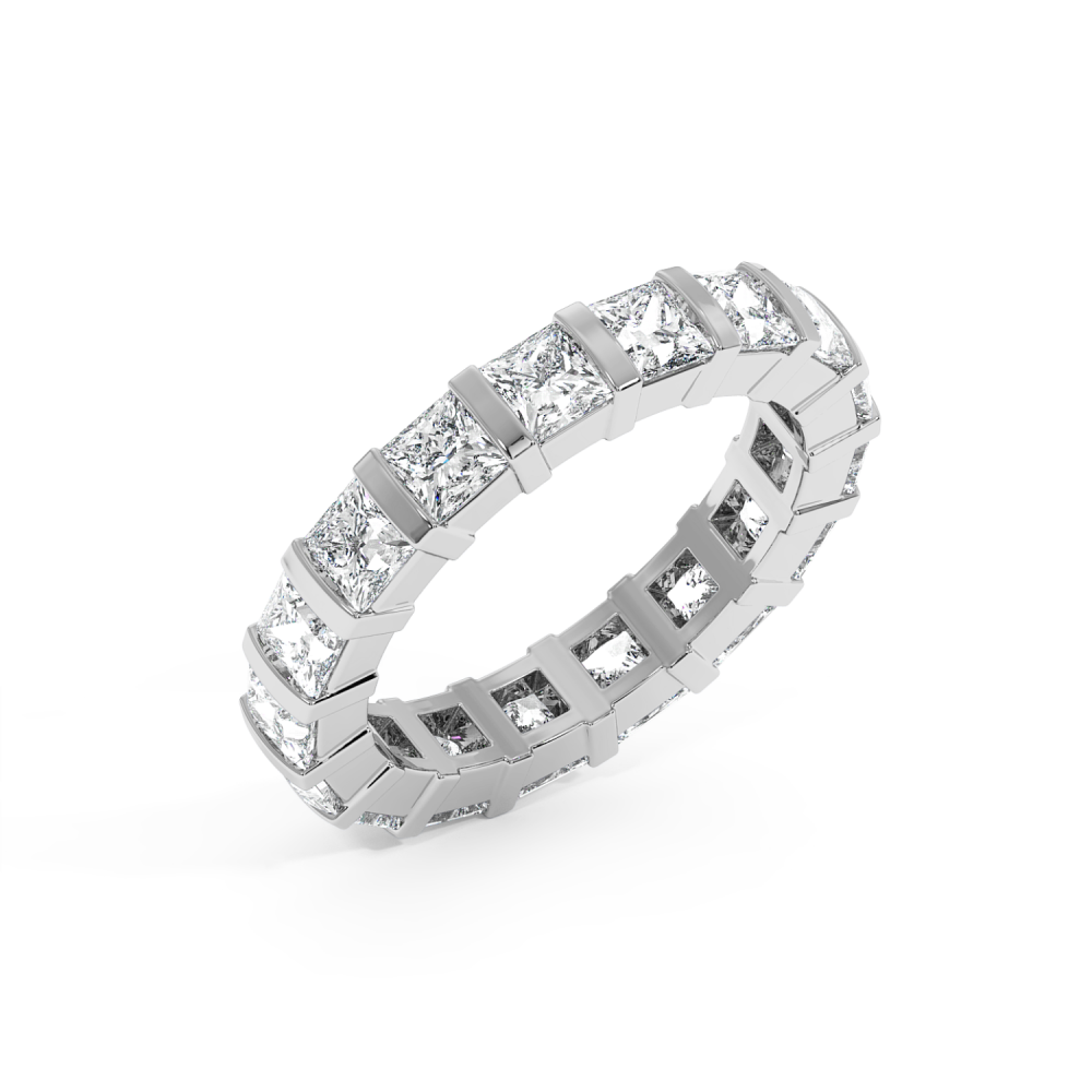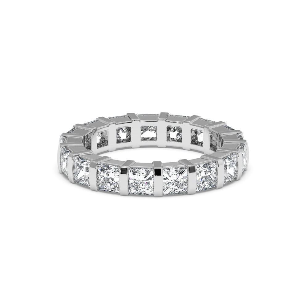 Inel/Verigheta Eternity din aur alb de 14K, cu diamante Princess Cut de 2.88ct. Greutatea inelului este de 5.40 grame.