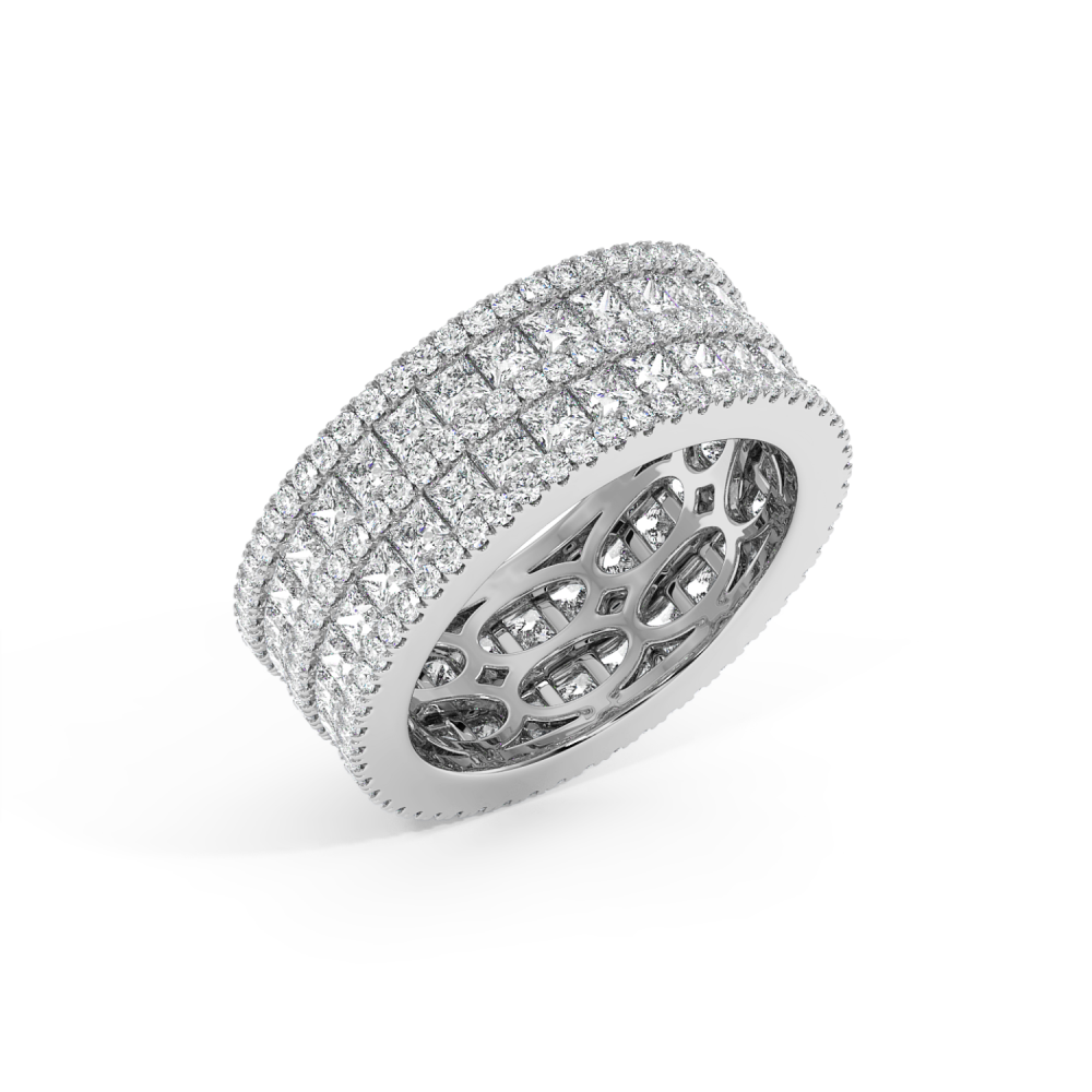 Inel Verigheta Eternity cu Diamante Princess Cut de 3ct si Diamante Rotunde de 0.60ct
