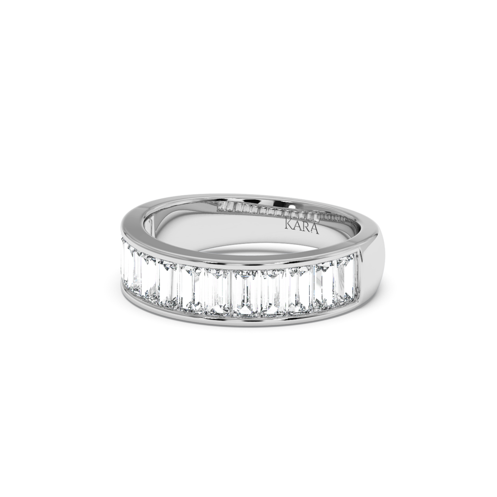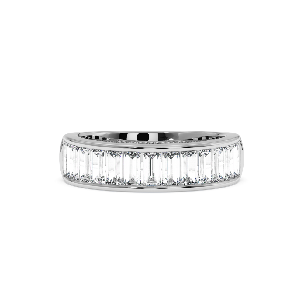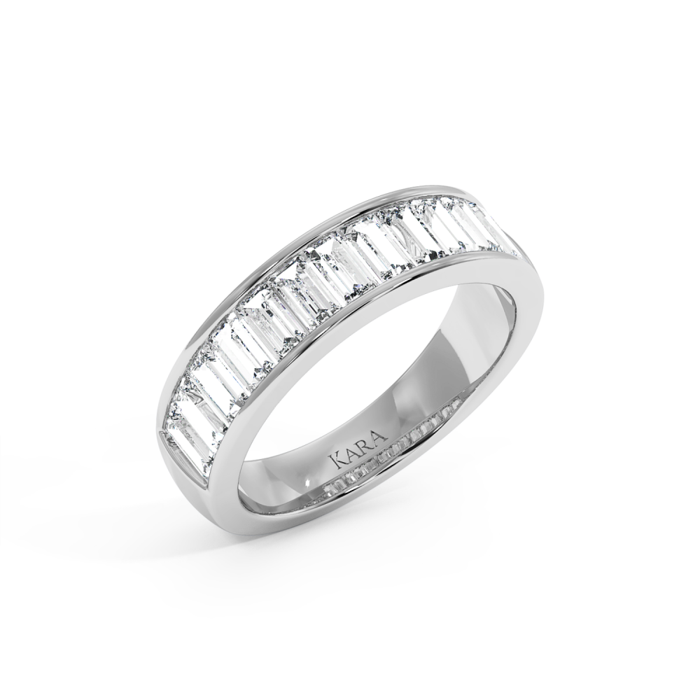Inelul/Verigheta Semi Eternity din aur de 14 K cu diamante Baget cut de 1.43 ct. Greutatea este de 4.06 grame. Gramajele si caratajele sunt aproximative. Se poate face pe comanda si din aur de 18K. Putem modifica designul in functie de bugetul dumneavoastra.